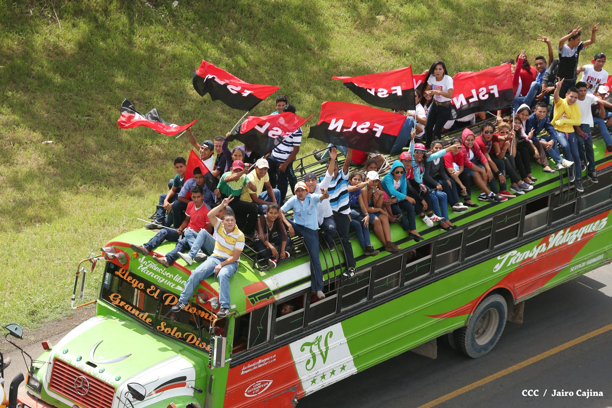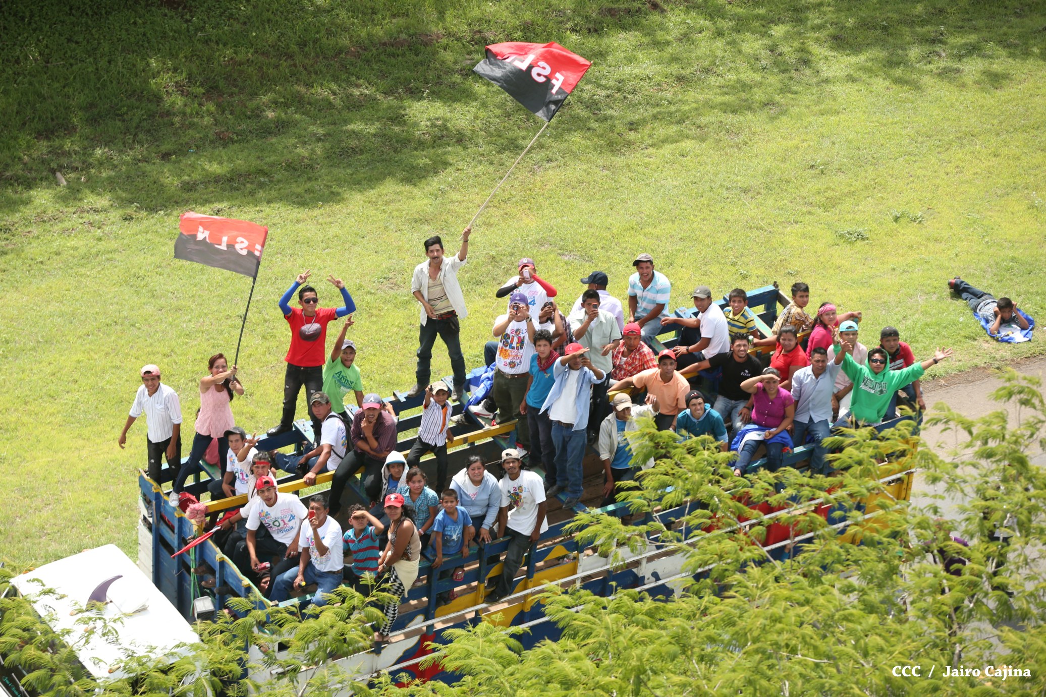 Familias de todo el país entran a Managua en inmensas caravanas llenas de entusiasmo, alegría y fe, para celebrar a lo grande en la Plaza La Fé, el 36 Aniversario de la Revolución.