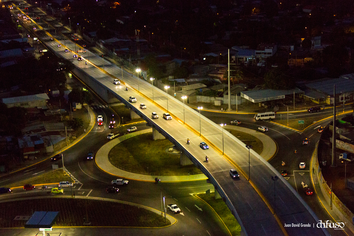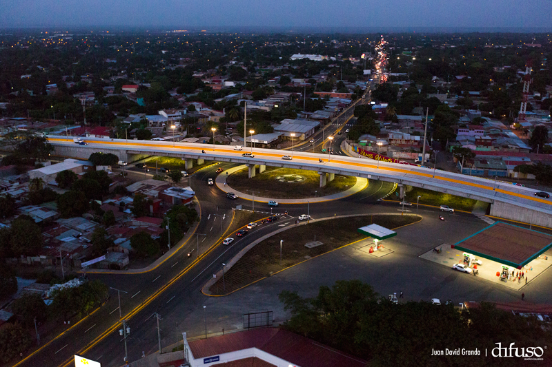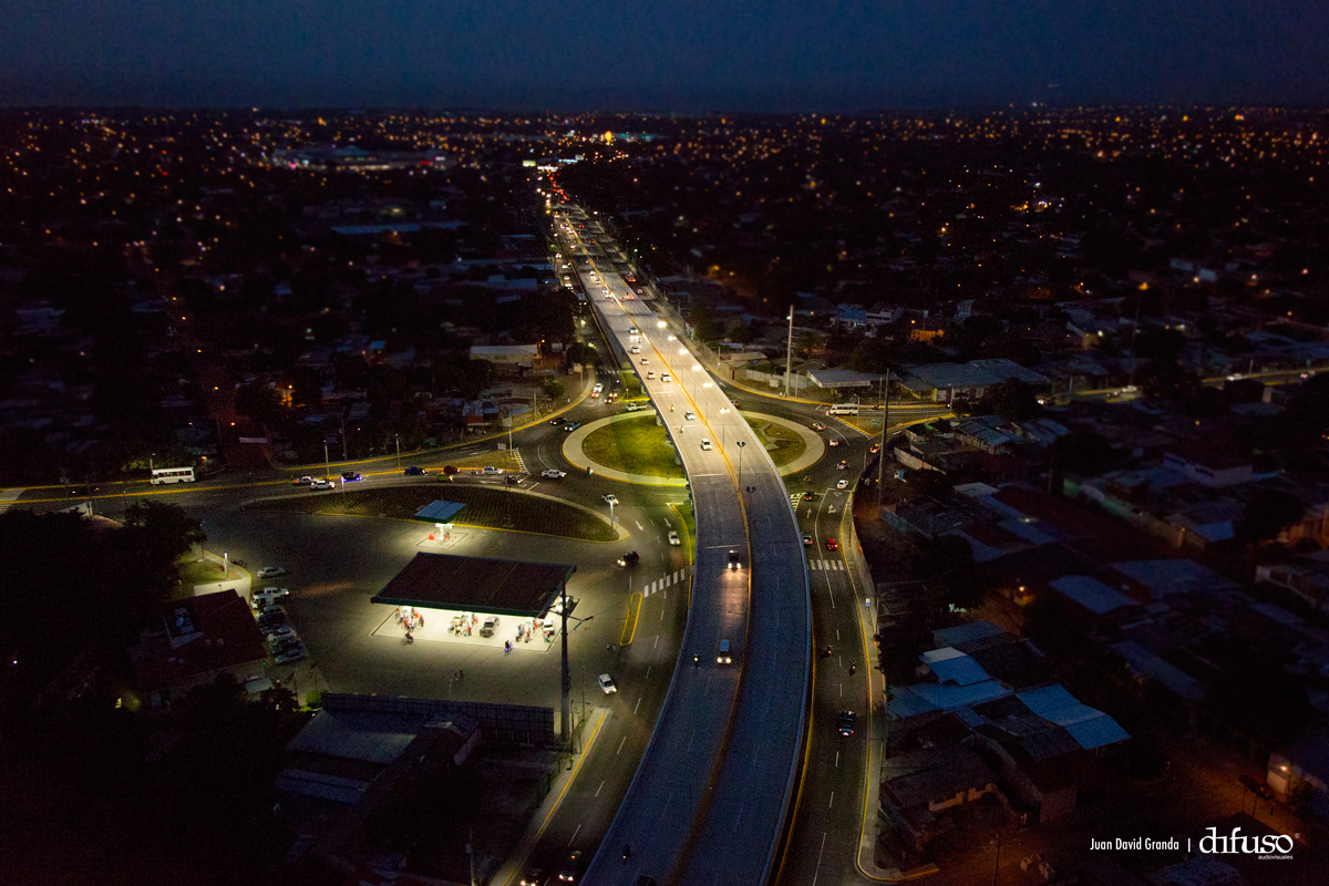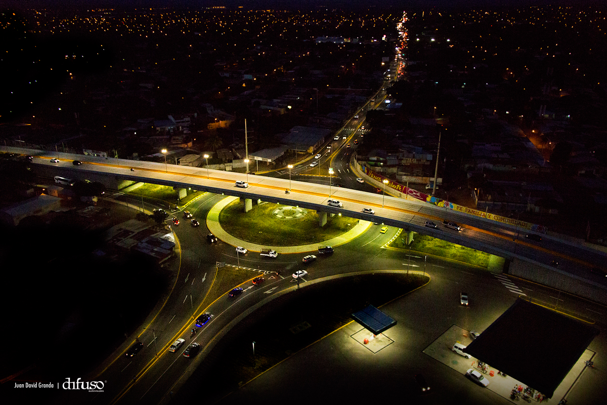 Impresionantes imágenes aéreas nocturnas del Paso a Desnivel "Barricada de la Esperanza" de Rubenia. Cortesía de Difuso Audiovisuales (Juan David Granda).