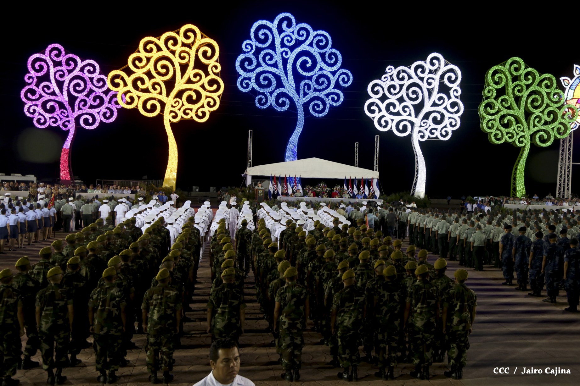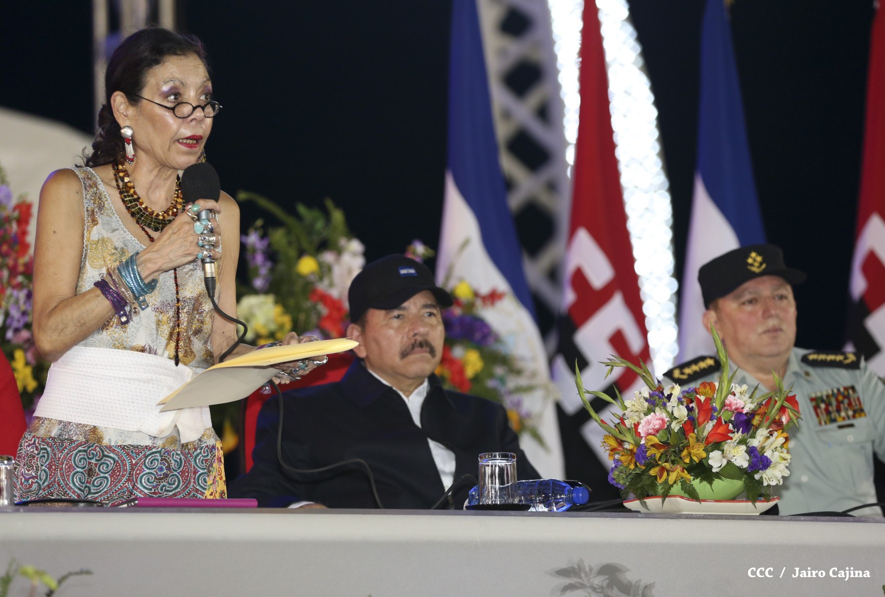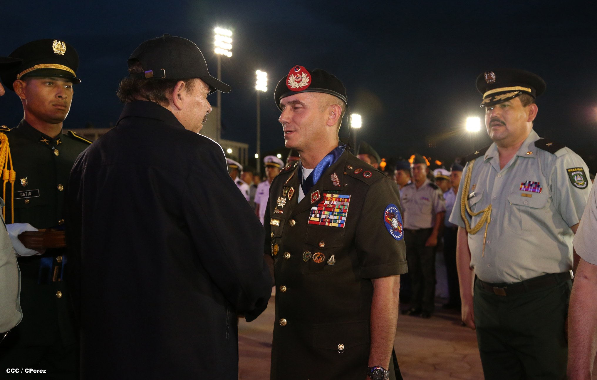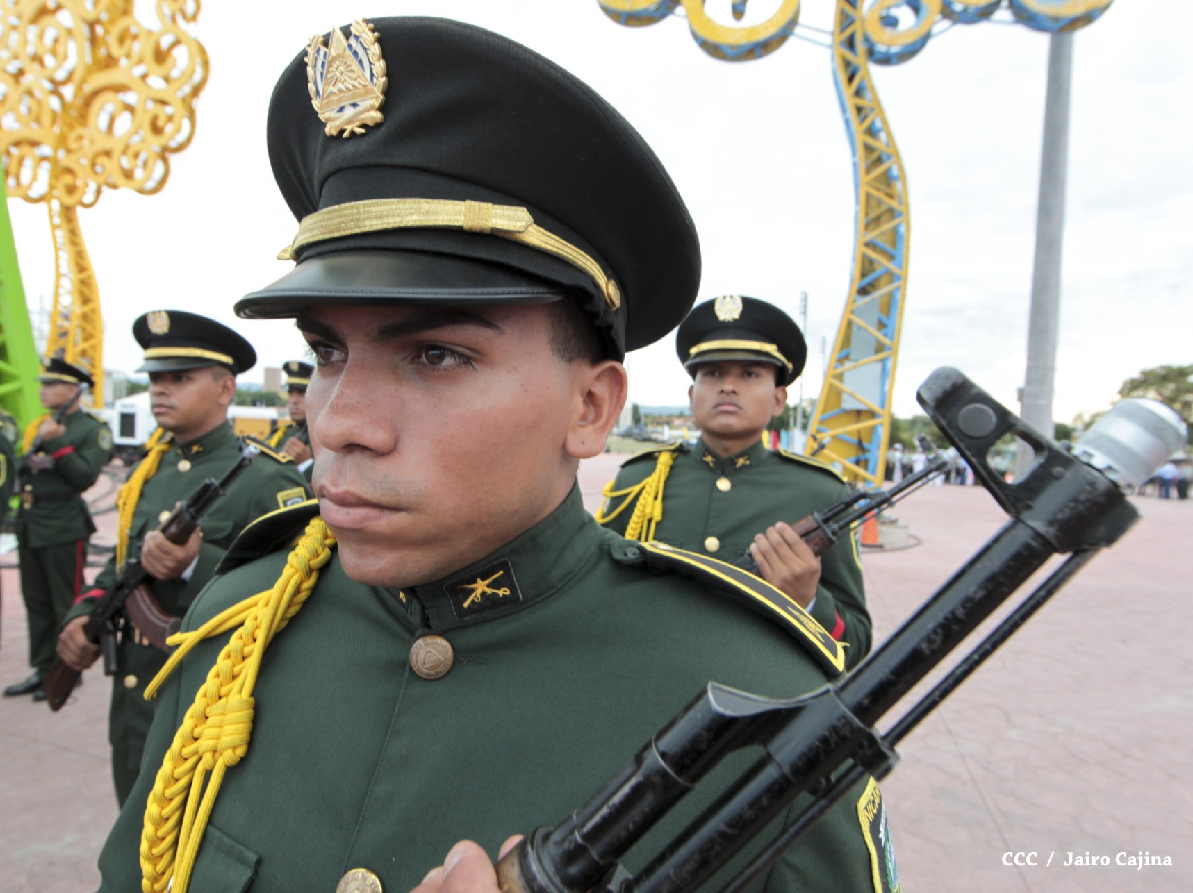 El Presidente de Nicaragua, Comandante Daniel Ortega, y la Coordinadora del Consejo de Comunicación y Ciudadanía, Compañera Rosario Murillo, participaron en el acto del 36 aniversario de constitución del Ejército de Nicaragua.