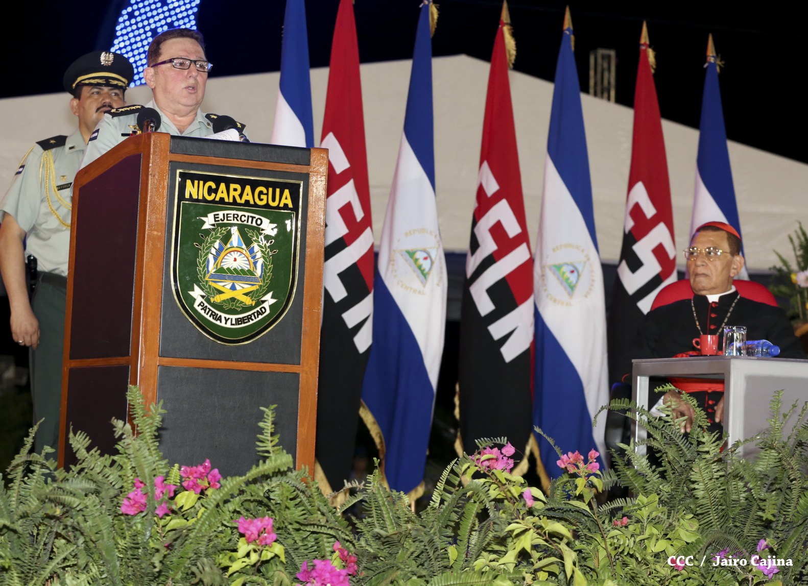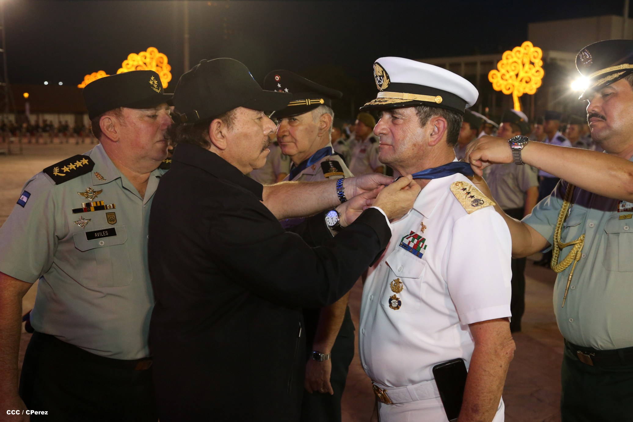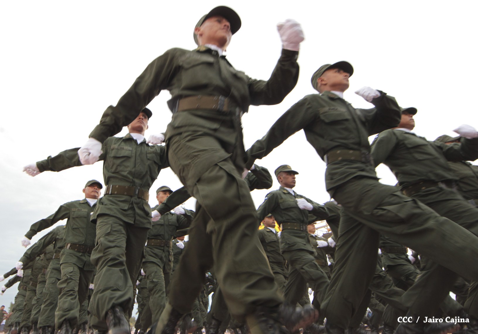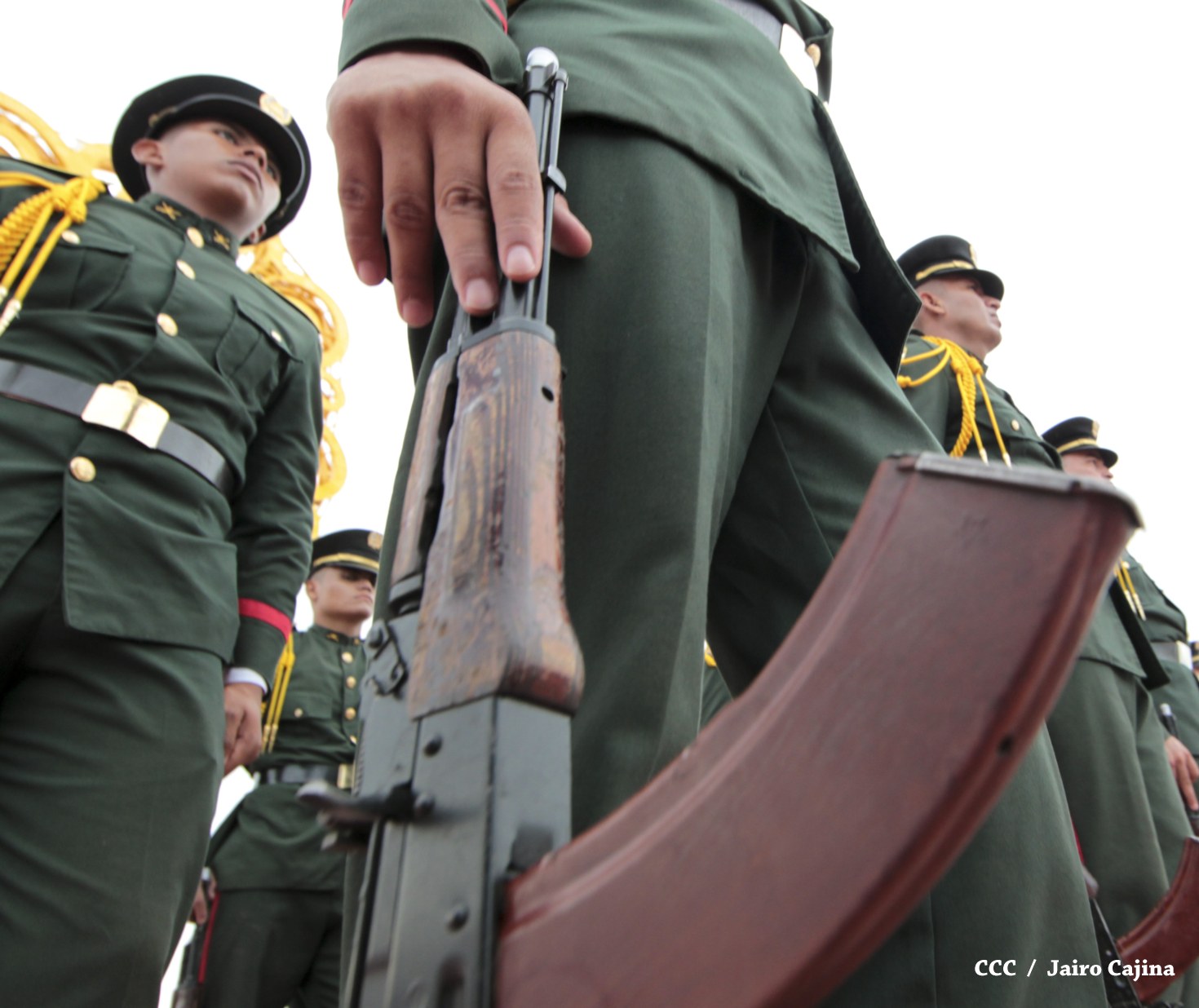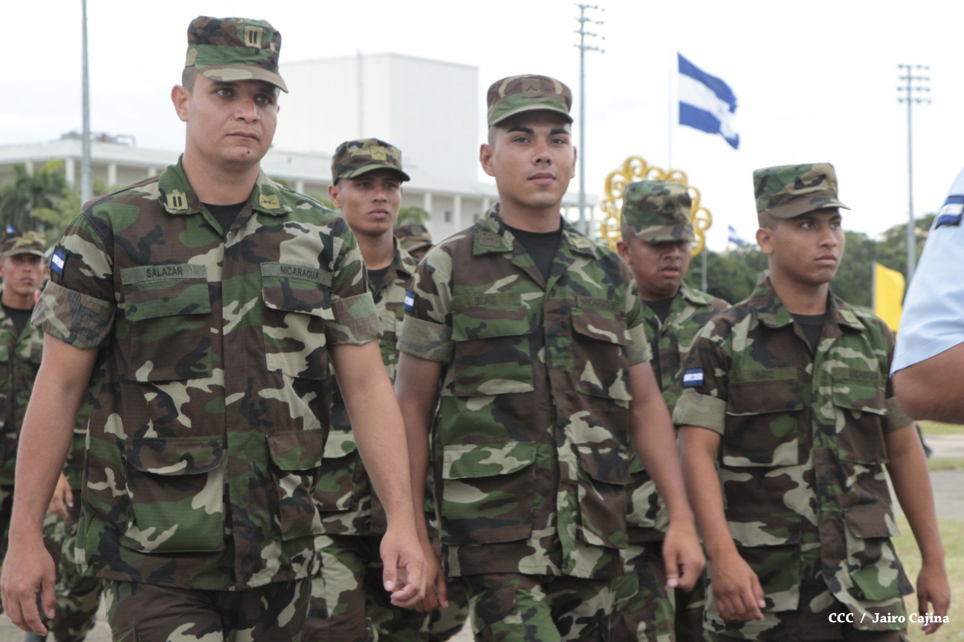 El Presidente de Nicaragua, Comandante Daniel Ortega, y la Coordinadora del Consejo de Comunicación y Ciudadanía, Compañera Rosario Murillo, participaron en el acto del 36 aniversario de constitución del Ejército de Nicaragua.