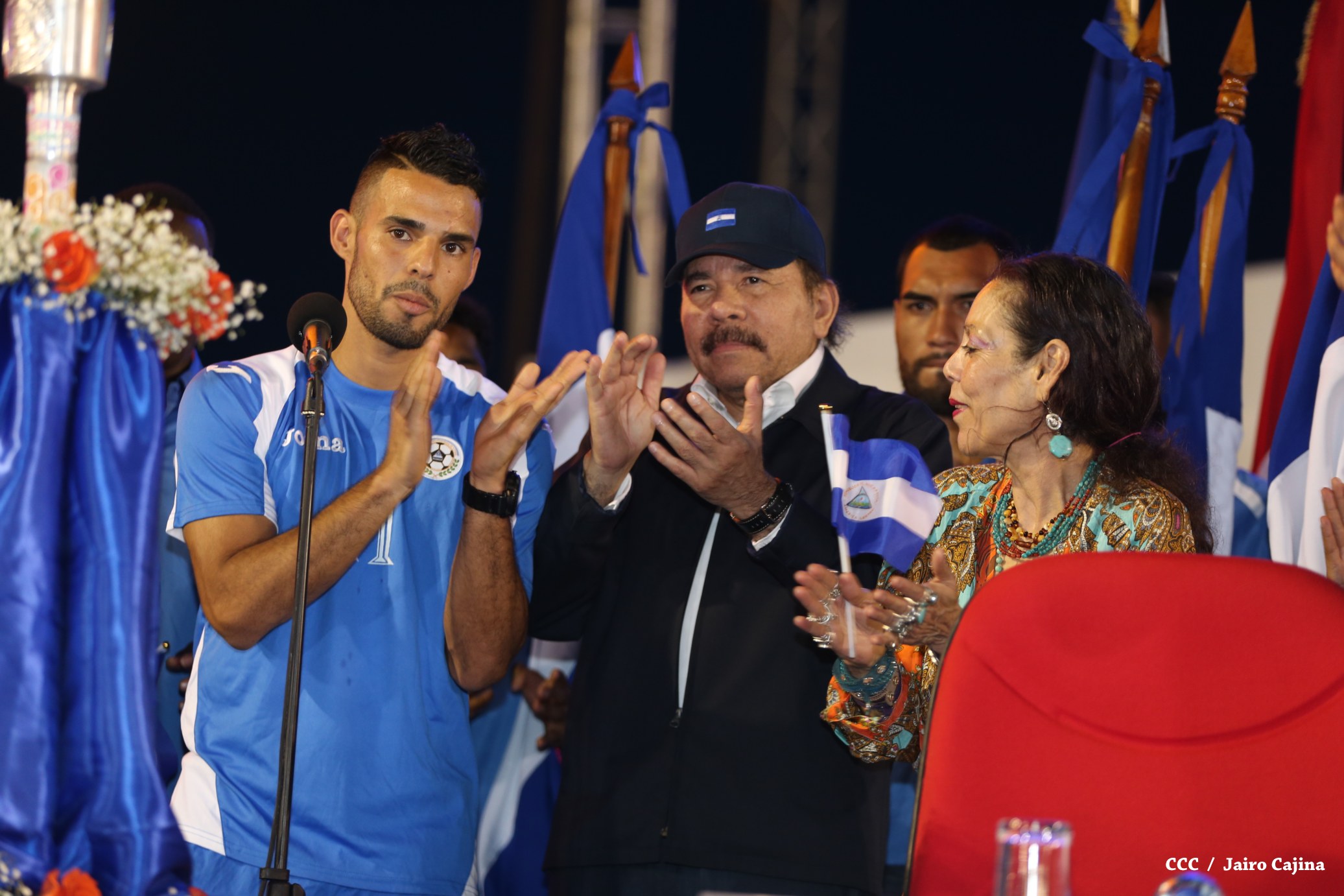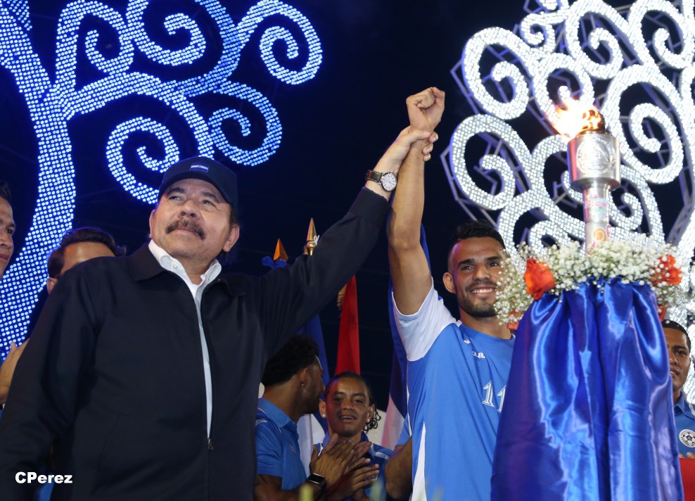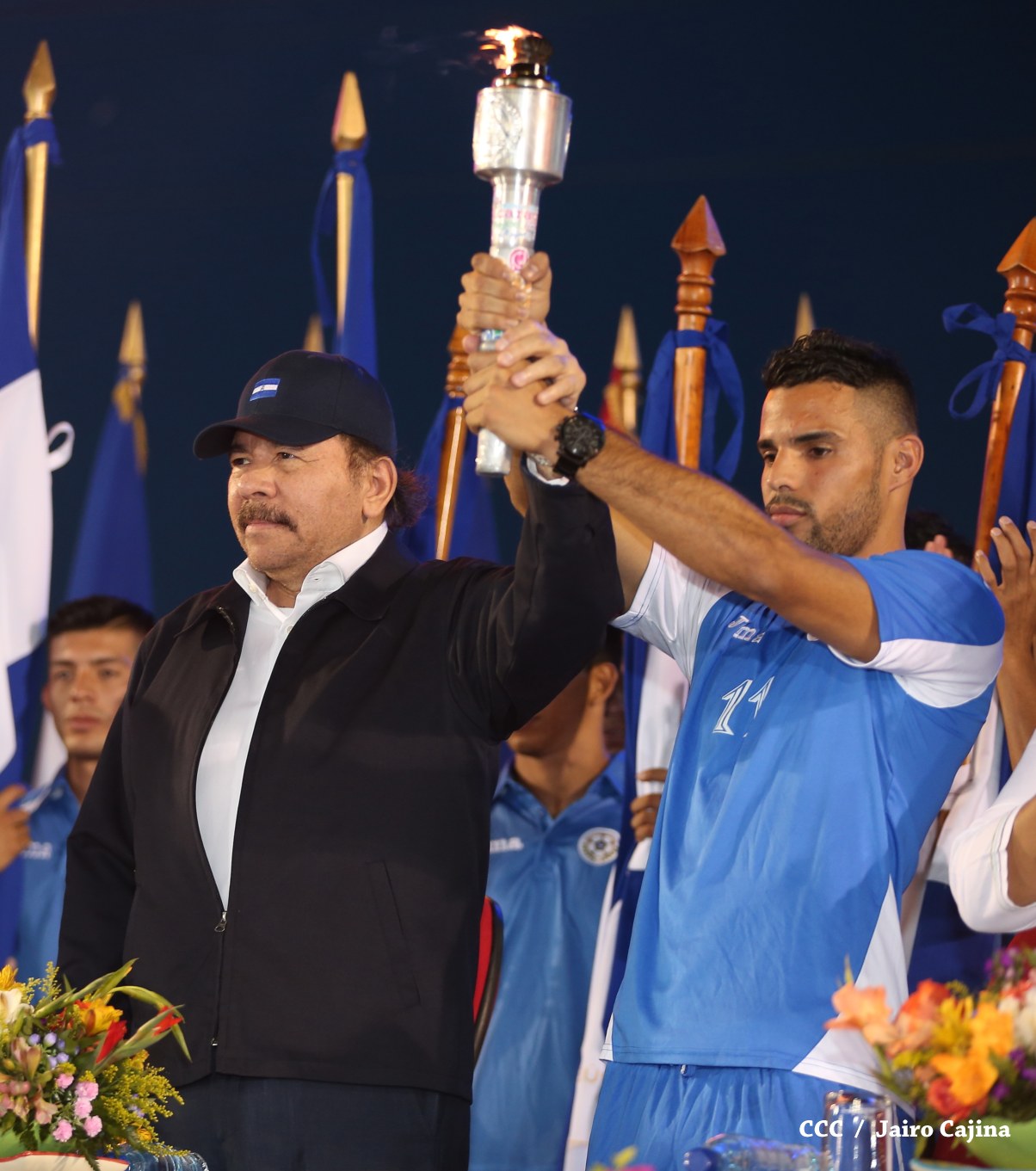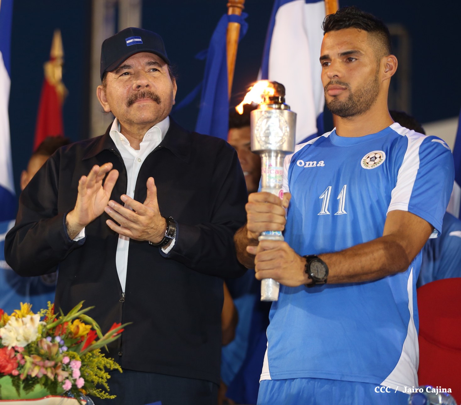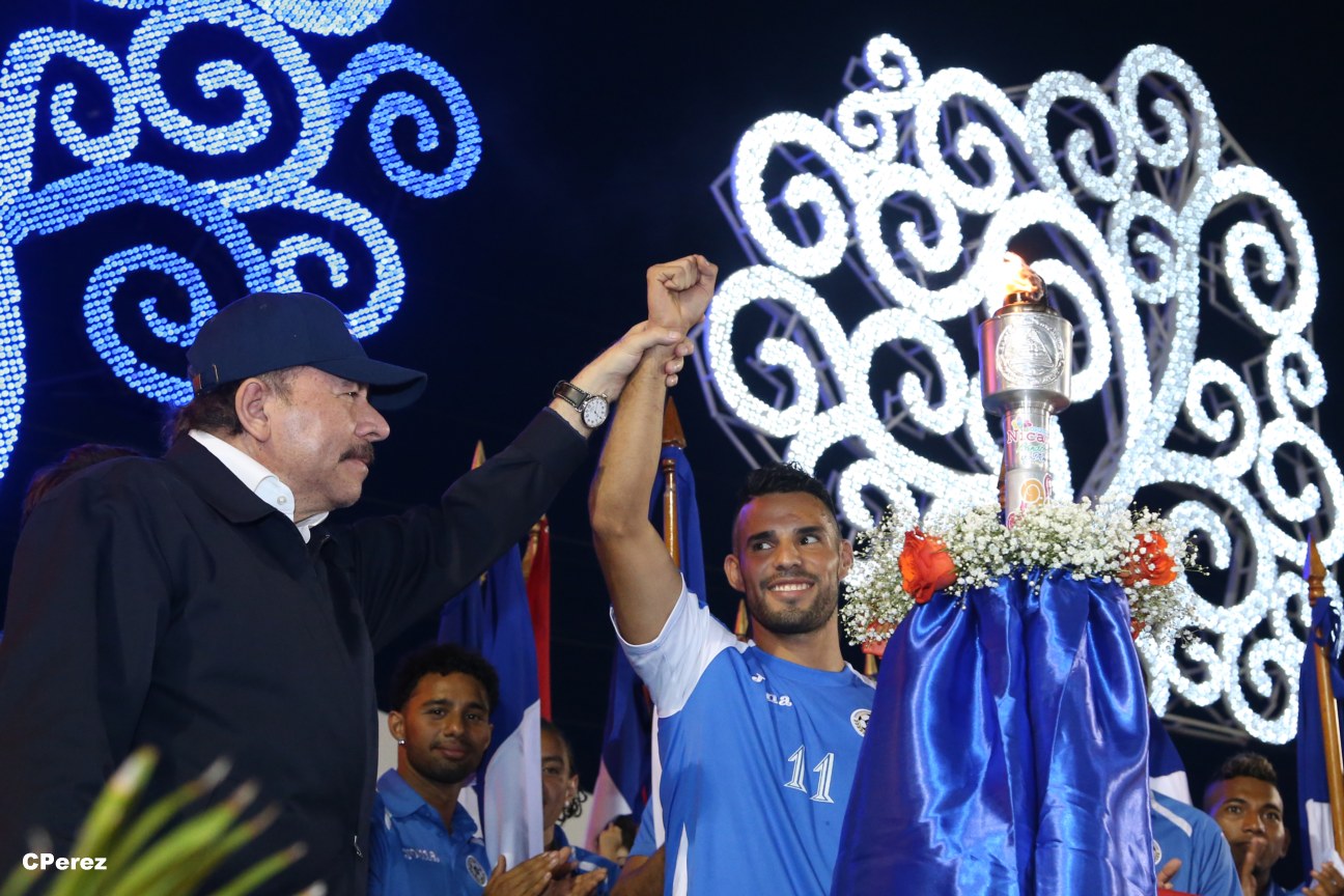El Presidente de la República, Comandante Daniel Ortega Saavedra, recibió de manos de la Selección Nicaragüense de Fútbol, la Antorcha de la Independencia y la Unidad Centroamericana, en un acto conmemorativo celebrado este viernes en Plaza La Fé “Juan Pablo II”.