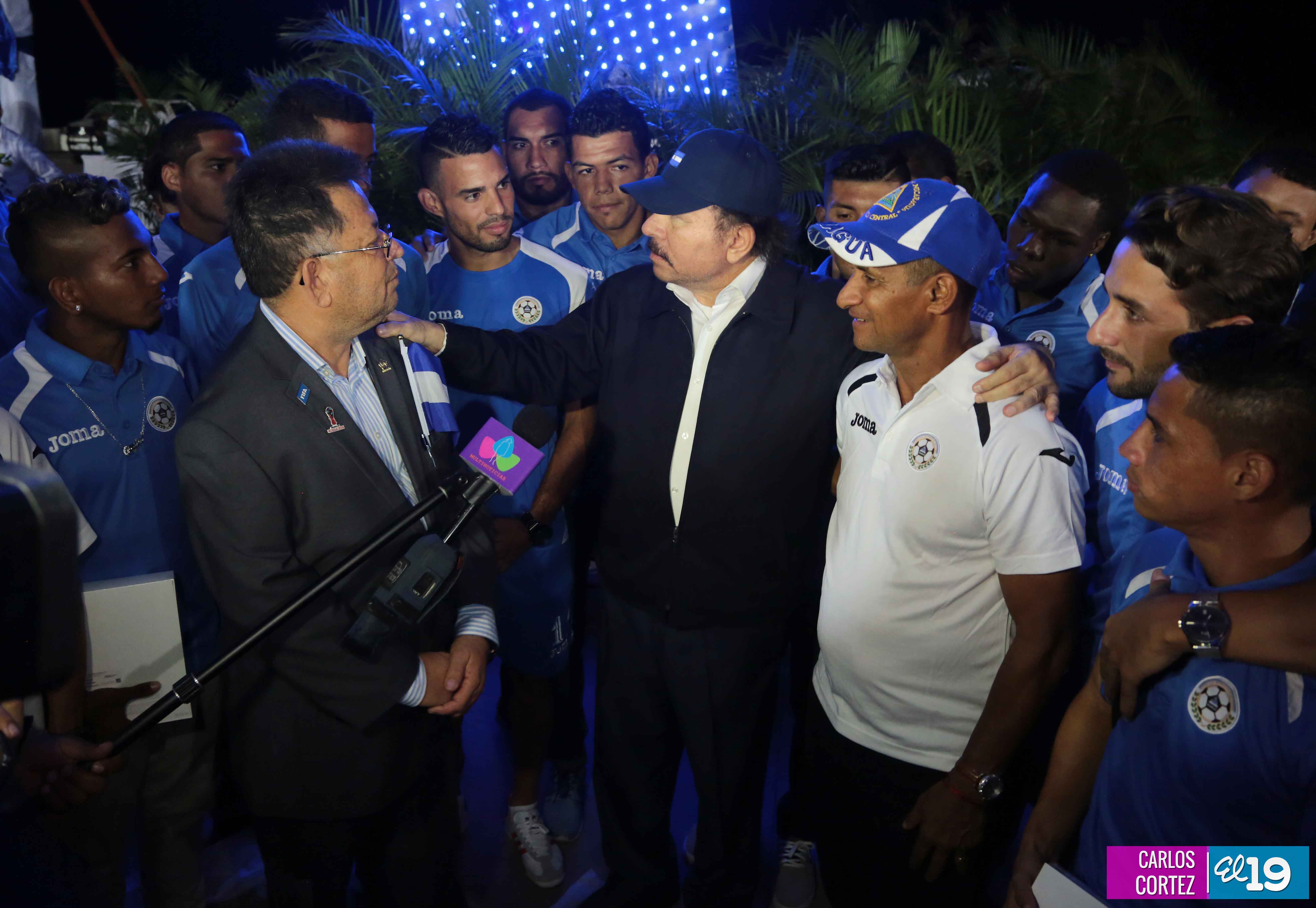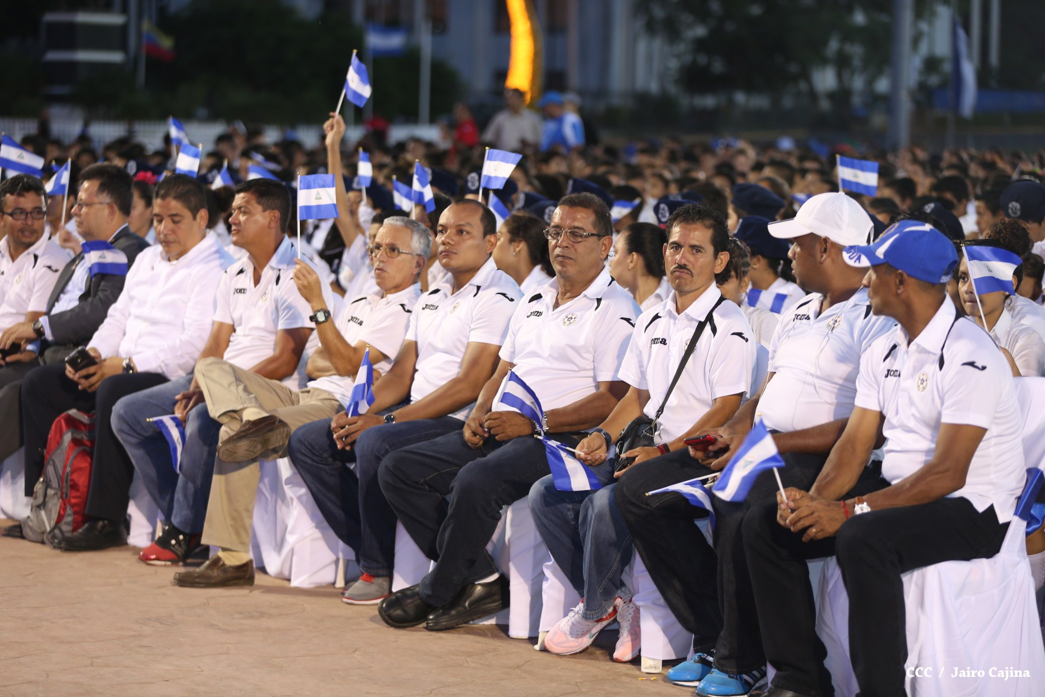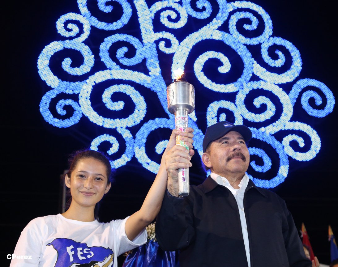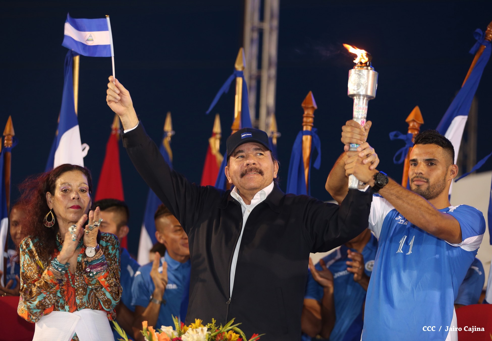 El Presidente de la República, Comandante Daniel Ortega Saavedra, recibió de manos de la Selección Nicaragüense de Fútbol, la Antorcha de la Independencia y la Unidad Centroamericana, en un acto conmemorativo celebrado este viernes en Plaza La Fé “Juan Pablo II”.