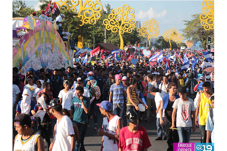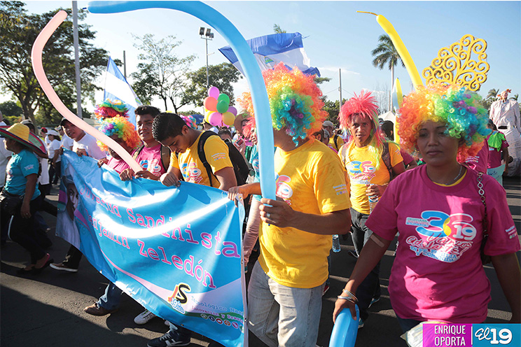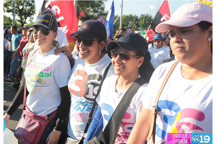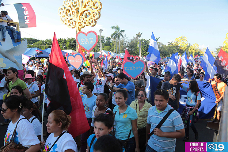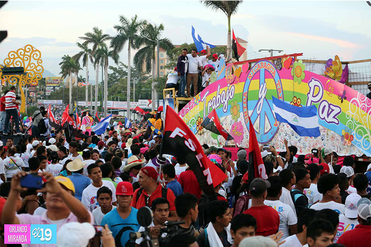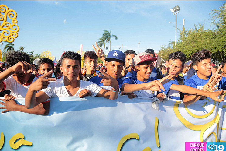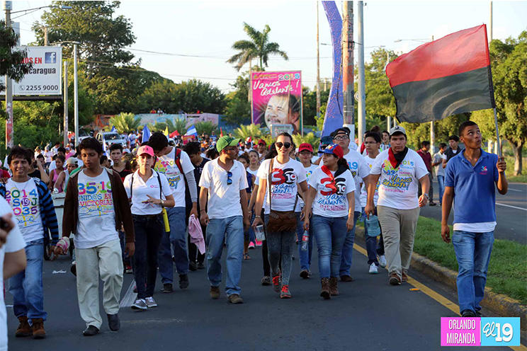 Miles de jóvenes, hombres y mujeres, en un despliegue de Amor a la Patria, participaron de la Gran Caminata Trabajo y Paz... Unida, Nicaragua Triunfa!