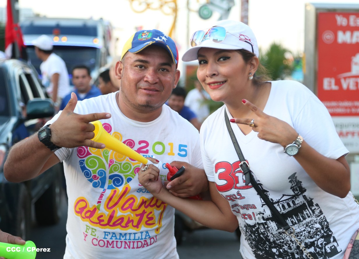 El pueblo nicaragüense se desbordó este martes en las calles de Managua, para alzar las banderas de la Paz y el Trabajo, durante una inmensa caminata llena de amor, alegría y juventud vibrante, celebrando las importantes Rutas de Prosperidad trazadas por el Gobierno Sandinista, conducido por el Presidente Daniel Ortega y la compañera Rosario Murillo.