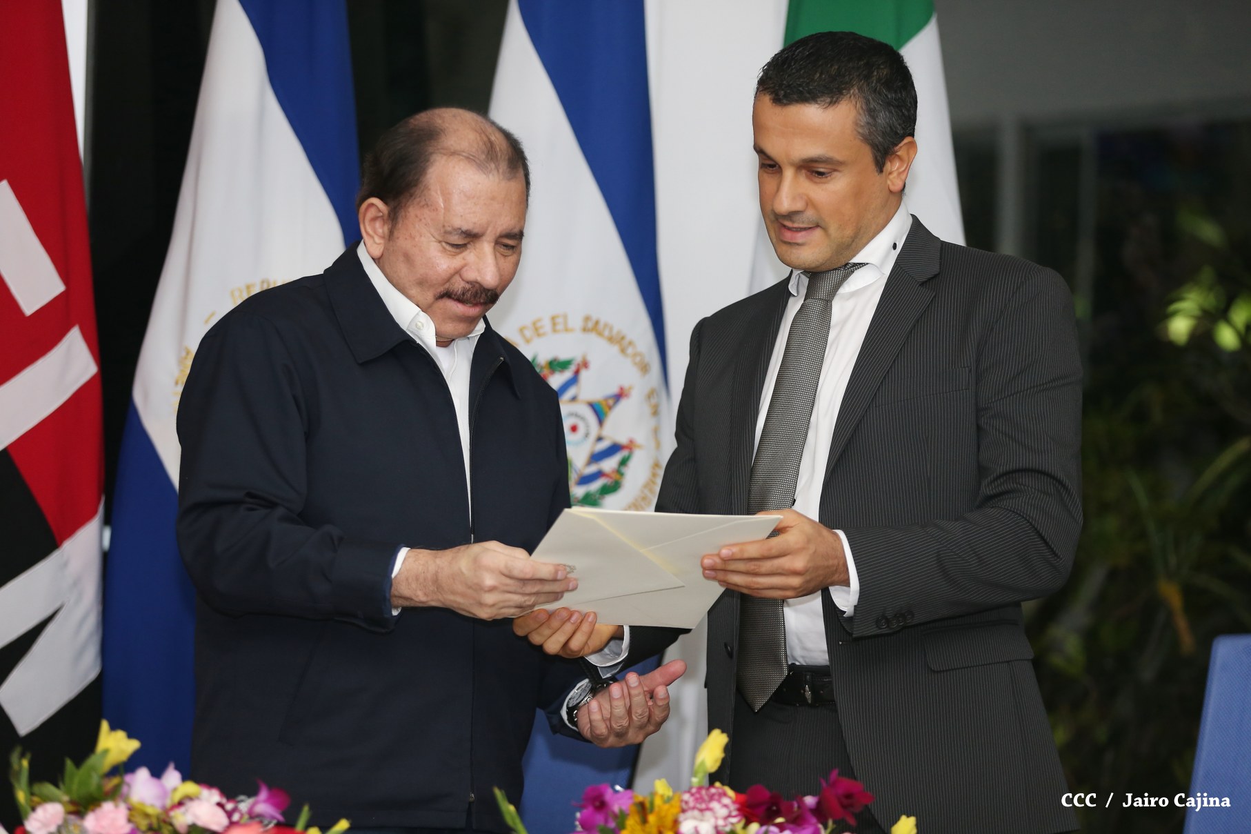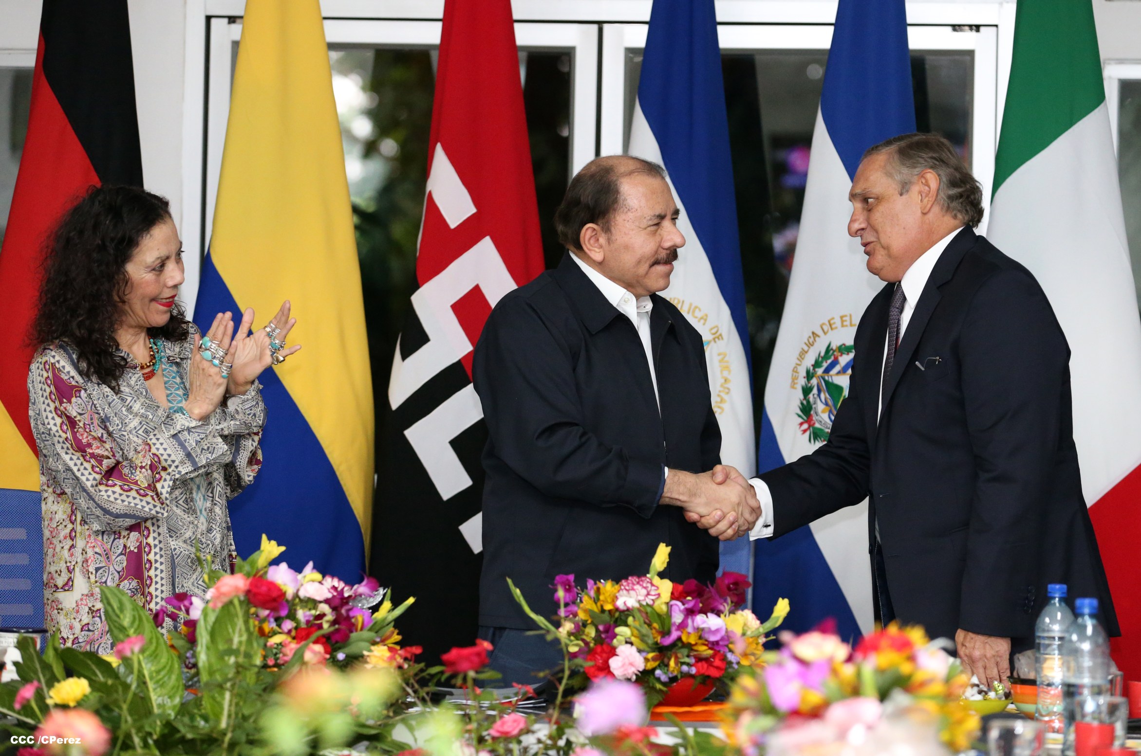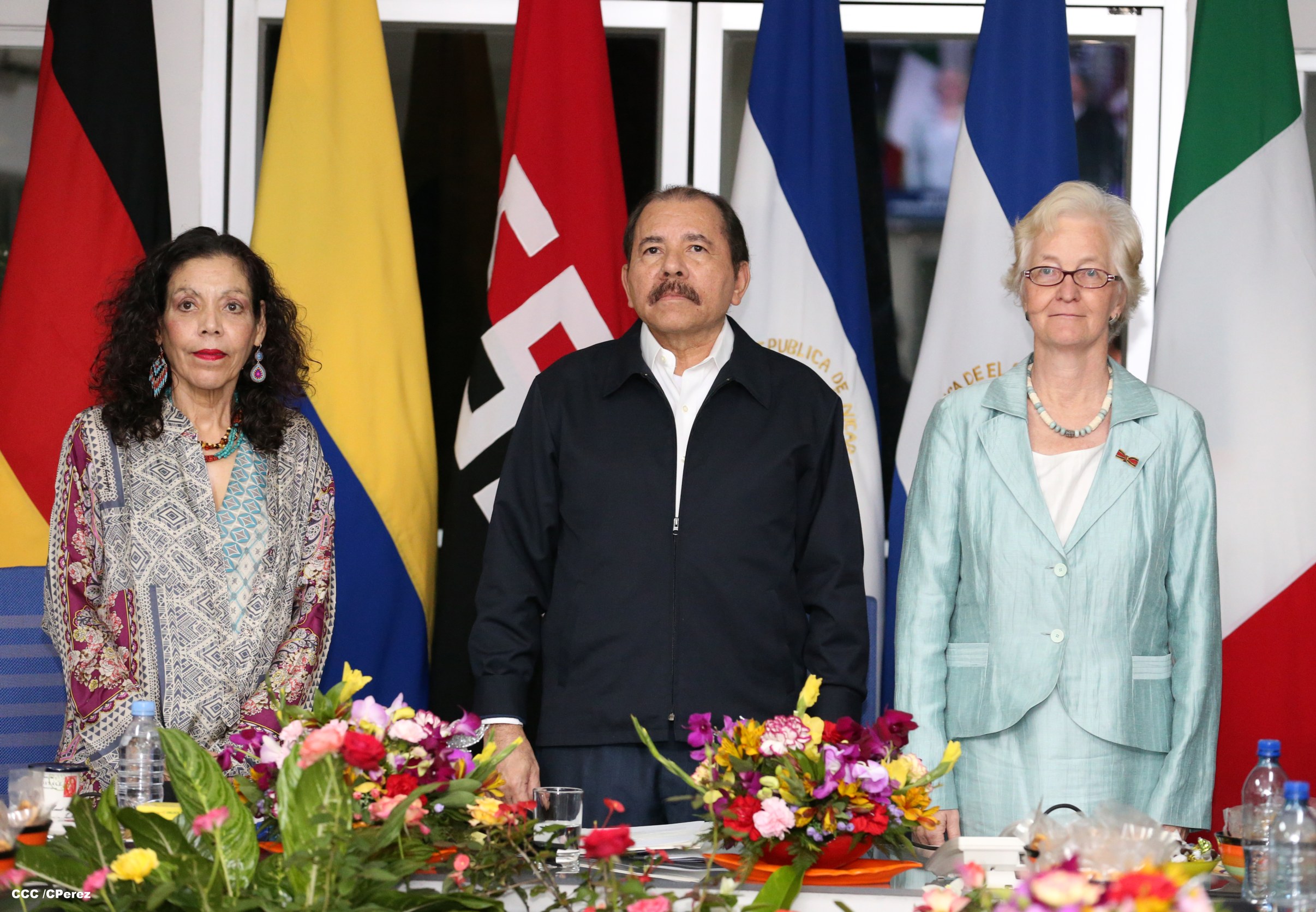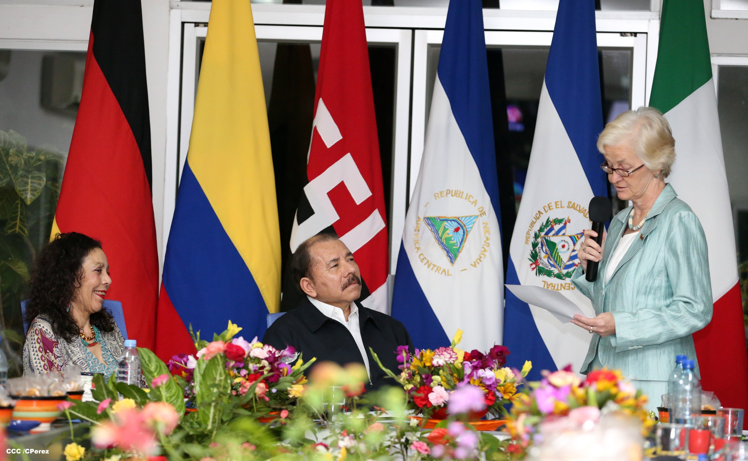 El Presidente de la República, Comandante Daniel Ortega y la Coordinadora del Consejo de Comunicación y Ciudadanía, Compañera Rosario Murillo, recibieron la tarde de este jueves las cartas credenciales de los embajadores de Colombia, El Salvador, Alemania e Italia.