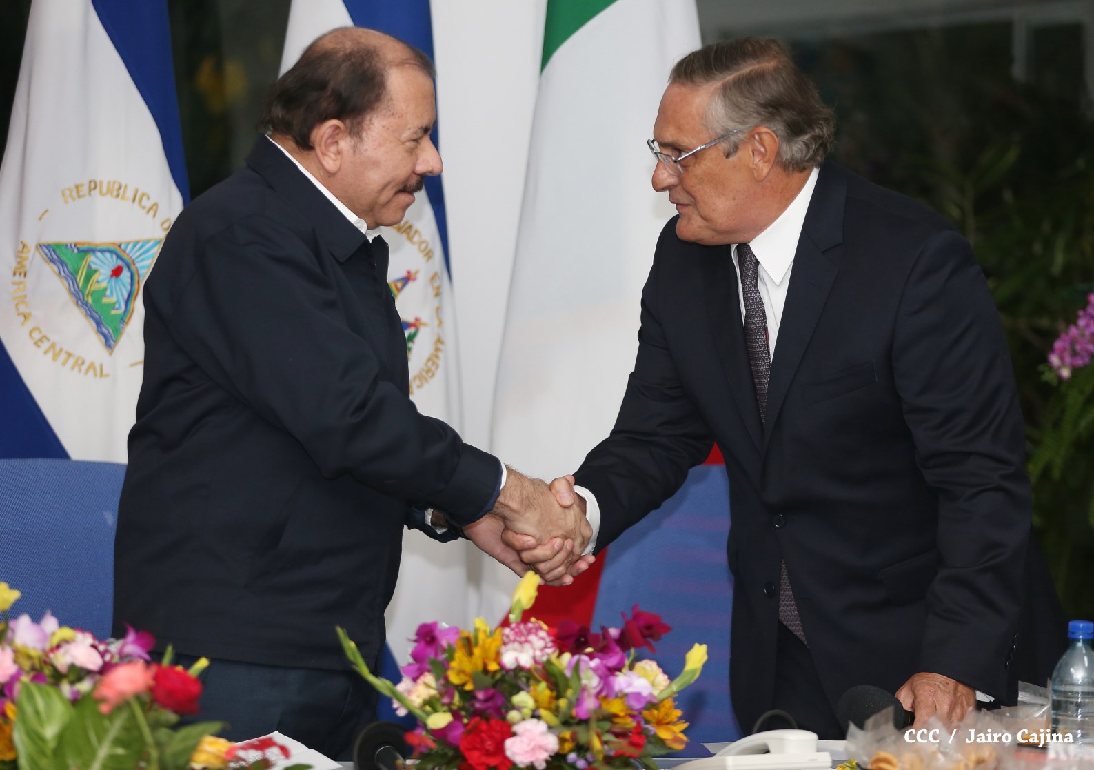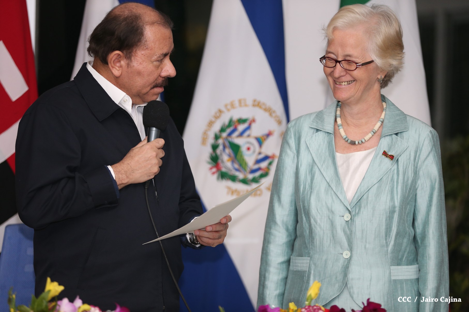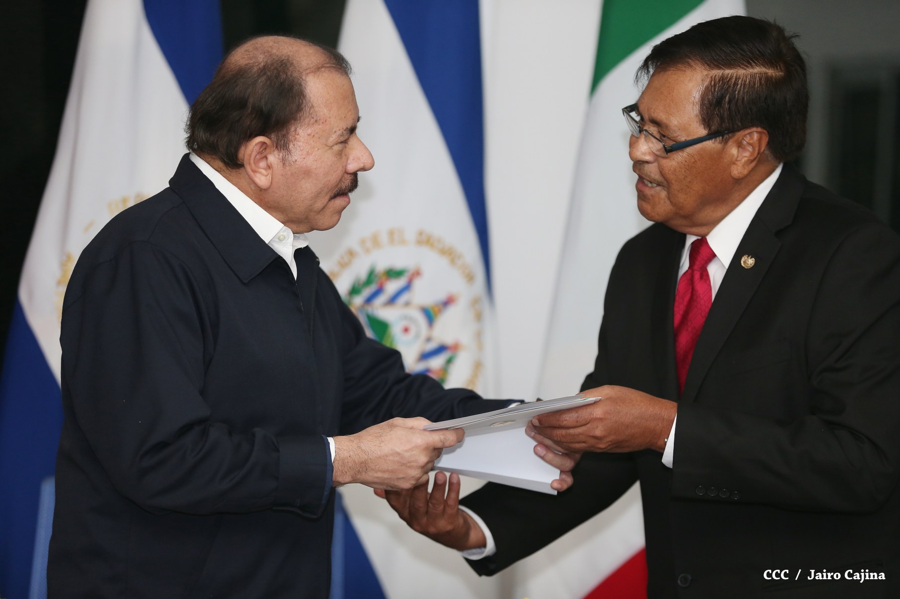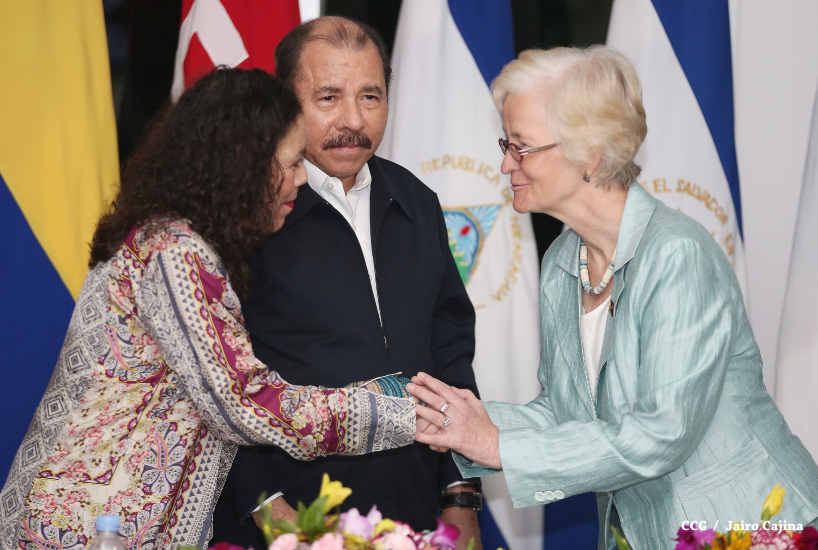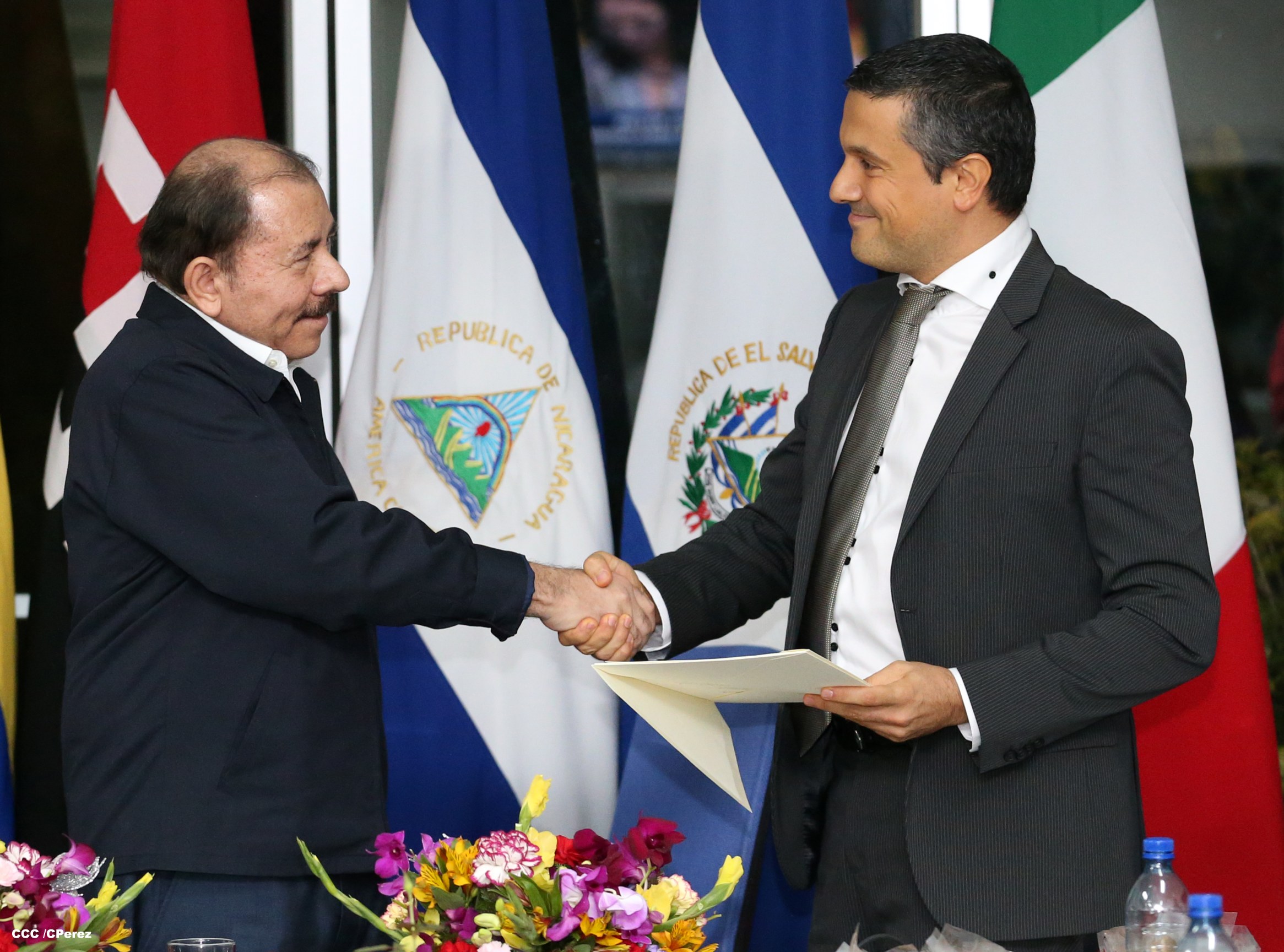 El Presidente de la República, Comandante Daniel Ortega y la Coordinadora del Consejo de Comunicación y Ciudadanía, Compañera Rosario Murillo, recibieron la tarde de este jueves las cartas credenciales de los embajadores de Colombia, El Salvador, Alemania e Italia.