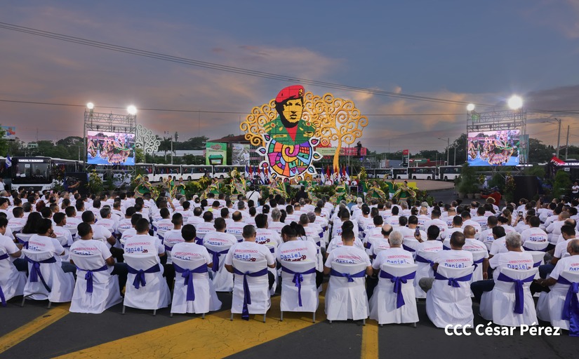 Desde la Avenida de Bolívar a Chávez, el Presidente Comandante Daniel Ortega Saavedra y la Vicepresidenta Compañera Rosario Murillo, presiden el acto glorioso en celebración del heroísmo del pueblo...