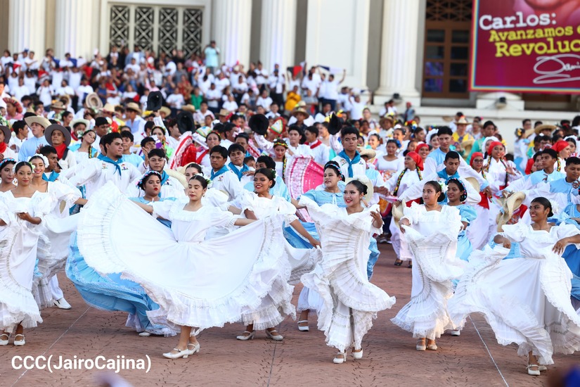 Desde la Plaza de la Fe, se celebra el acto central presidido por el Presidente Comandante Daniel Ortega y la Vicepresidenta Compañera Rosario Murillo, en conmemoración de los 45 años del Inicio d...
