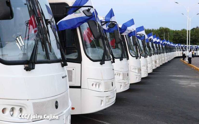 Presidente Daniel Ortega y Compañera Rosario Murillo entregan buses rusos a transportistas