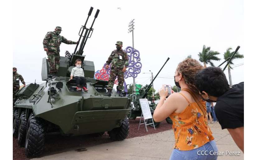 El Ejército de Nicaragua inauguró en la Plaza Juan Pablo II, la exposición estática de técnicas, medios y equipos militares, en saludo al 43 aniversario de su fundación.