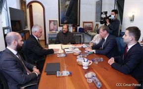 El Presidente Comandante Daniel Ortega y la compañera Rosario Murillo sostienen un encuentro con el Presidente de Honduras, Juan Orlando Hernández, en Managua, Nicaragua.