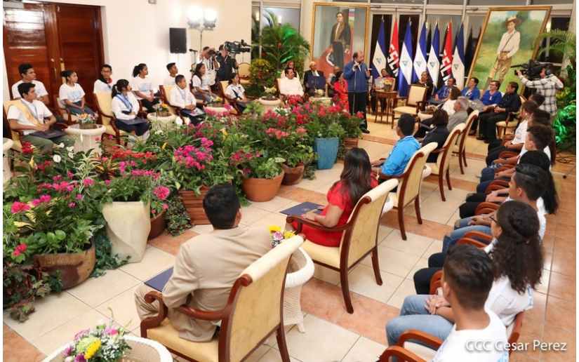 En un ambiente de hermandad y compañerismo se desarrolló la reunión que sostuvieron este lunes 10 de febrero, el presidente Daniel Ortega y la vicepresidenta Rosario Murillo con la delegación de al...