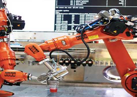 El conocido como Makr Shakr tiene tres brazos robóticos que pueden verter y mezclar hasta 100 diferentes tipos de bebidas, tanto alcohólicas como no. El robot decide directamente la orden del pedido desde iPhone e inmediatamente se dispone a preparar la bebida y entrega el trago solicitado.