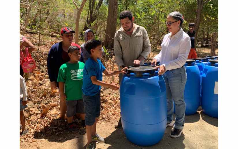 Las autoridades locales en coordinación con la ONG Buenos Vecinos hicieron entrega de barriles para la recolección de agua, a familias de Santa Teresa en Carazo.