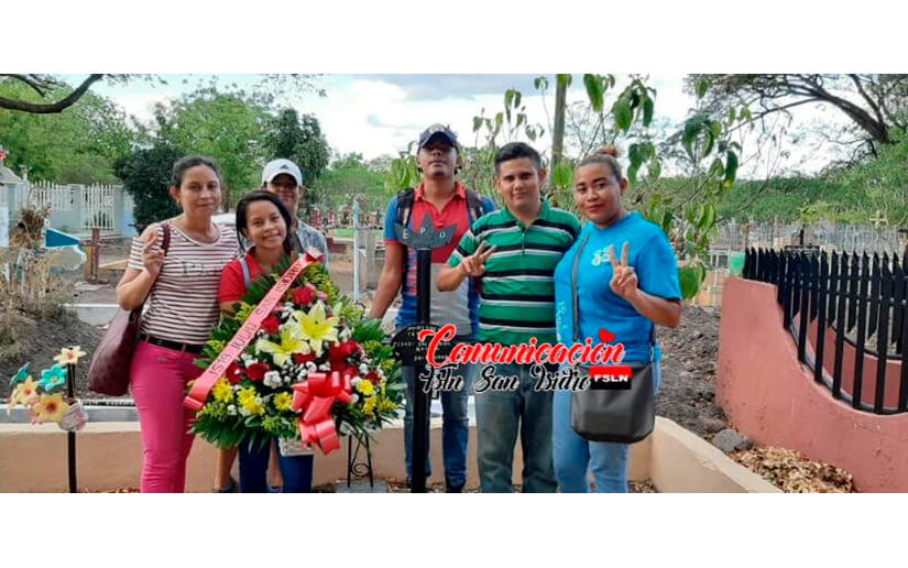 Miembros del CLS Municipal y Juventud Sandinista 19 de Julio del Municipio de San Isidro, Matagalpa depositaron una ofrenda floral en homenaje al Compañero Leopoldo Salmerón Arteta, caído en combate, el 17 de Marzo de 1986, en la Comunidad de Agua Zarca, Municipio de Sébaco, originario del Barrio Pancasán, Municipio de San Isidro.