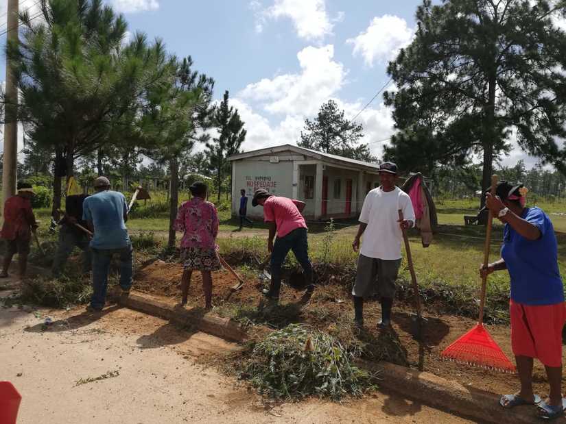 En Prinzapolka la compañera alcaldesa Prodelina Bobb realizó una jornada de limpieza y visita casa a casa a la población indígena con el objetivo de concientizarla sobre las medidas ante el Covid-19.