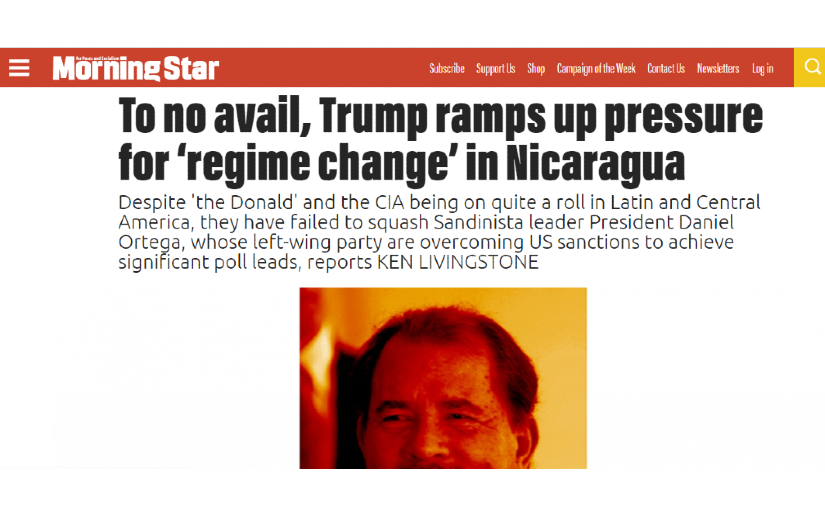 A pesar de que 'Donald' y la CIA están en una buena racha en América Latina y América Central, no han podido aplastar al líder sandinista, el presidente Daniel Ortega, cuyo partido de izquierda está superando las sanciones de los Estados Unidos y seguir liderando la opinión pública según importantes encuestas, informa KEN LIVINGSTONE.
