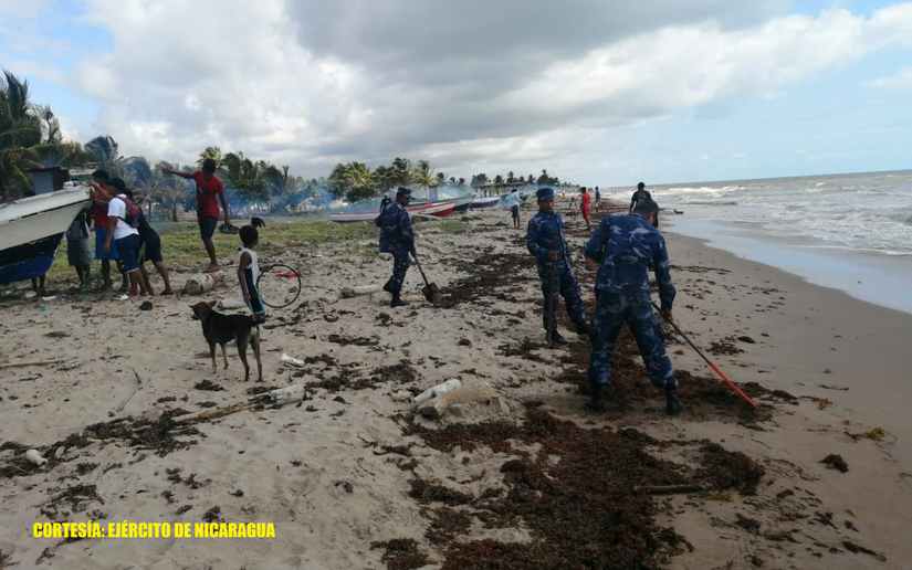 El 3 de abril de 2020, en el marco de tareas de apoyo a la población, efectivos militares del Distrito Naval Caribe de la Fuerza Naval del Ejército de Nicaragua, en coordinación con autoridades comunales y pobladores, participaron en jornada de limpieza, en la playa de la comunidad de Sandy Bay Sirpi, municipio Desembocadura de Río Grande, Región Autónoma de la Costa Caribe Sur.
