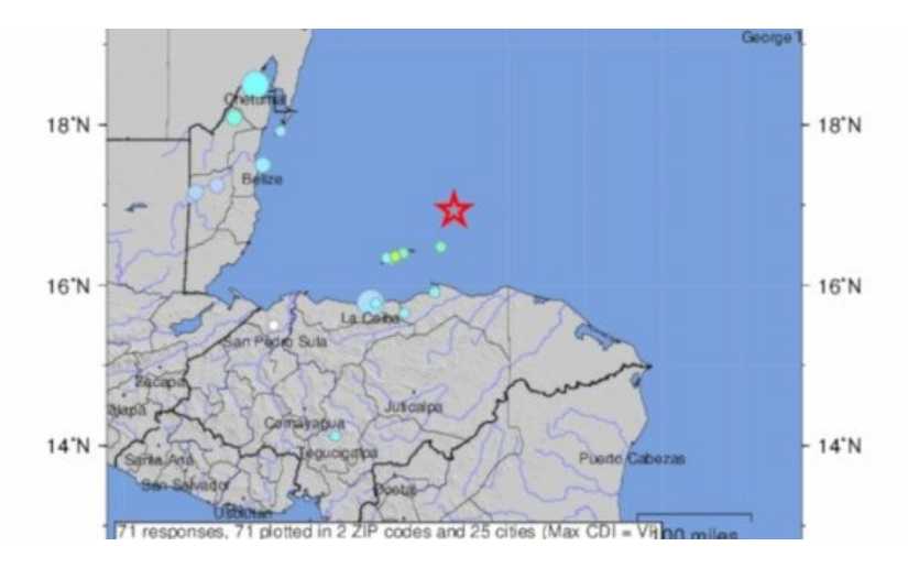 El sismo se localizó a 62 kilómetros al noreste de la isla de Guanaja, en Honduras.