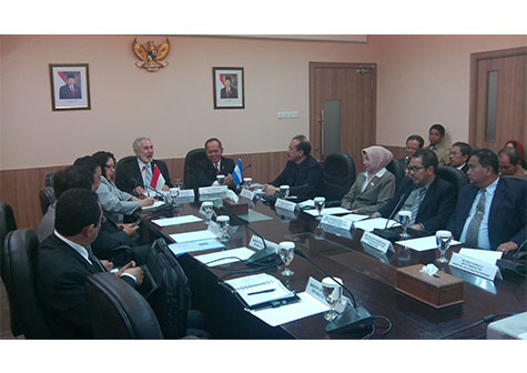 Como parte del programa que desarrolla el Canciller de la República, Compañero Samuel Santos López, en su visita de trabajo a la República de Indonesia, sostuvo este lunes importantes reuniones con funcionarios de Gobierno y de la empresa privada de ese país entre los que destacan el Ministro Coordinador para Asuntos Económicos, Sr. Hatta Rajasa, y el Ministro para Cooperativas, Pequeñas y Medianas Empresas, Señor Syarifuddin Hasan.
