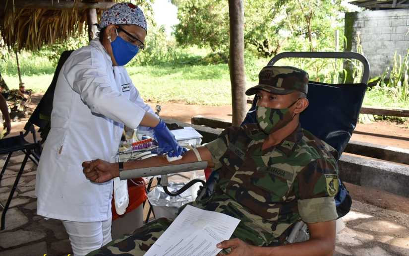 Del 3 al 5 de agosto de 2020, en el marco de las tareas de apoyo a la población, efectivos militares del 2 Comando Militar Regional del Ejército de Nicaragua, en coordinación con el Banco Regional de Sangre, participaron en jornada de donación voluntaria de sangre en los Campamentos Militares “Cacique Adiact”, General “José León Díaz” y Almacén “San Benito”, departamento de Chinandega.
