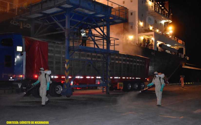 El 9 de septiembre de 2020, en el marco de las tareas de protección a la población y en cumplimiento al Plan de Empleo de Fuerzas y Medios del Ejército de Nicaragua para el combate ante la COVID-19, efectivos militares de la Unidad Humanitaria y de Rescate “Comandante William Ramírez Solórzano”, Fuerza Naval y el 2 Comando Militar Regional, en coordinación con las autoridades del Ministerio de Salud (MINSA) y la Alcaldía del municipio de Corinto, continuaron jornada de desinfección en espacios públicos abiertos, beneficiando a 18,500 personas.