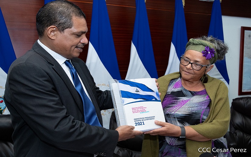 El ministro de Hacienda y Crédito Público, compañero Iván Acosta, presentó ante la Primera Secretaria de la Asamblea Nacional, diputada Gloria Raquel Dixon, la iniciativa de Ley del Presupuesto General de la República 2021 que tiene gran concentración de recursos para el gasto social.