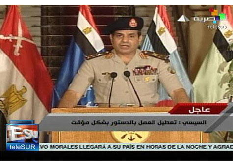 El consejero de seguridad nacional del presidente egipcio Mohamed Mursi denunció más temprano que estaba en marcha un golpe de Estado militar y advirtió que éste no puede triunfar contra la voluntad popular si no es con un considerable baño de sangre.