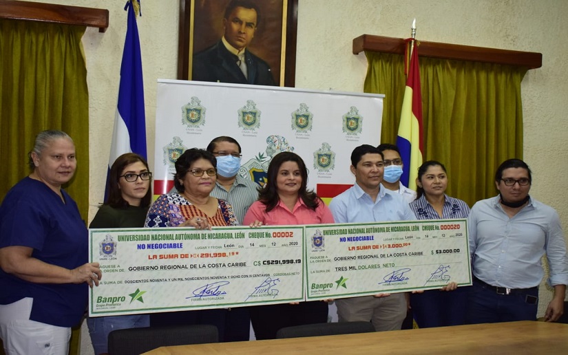 La comunidad universitaria de la UNAN-León a través de los sindicatos Alí Abarca Meléndez Administrativo y Sindicato de Profesionales de la Educación Superior, informaron de la entrega de una donación económica de más de 291 mil córdobas por parte de ambos sindicatos y 3 mil dólares de la misma institución académica, para las familias afectadas por los huracanes Eta y Iota en la Costa Caribe Norte.