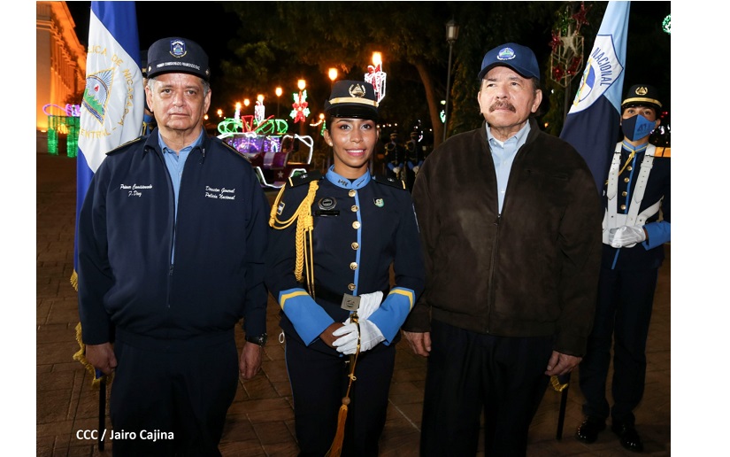 Comandante Daniel Ortega Saavedra, Compañera Rosario Murillo Zambrana, queremos expresarles nuestro agradecimiento por su Liderazgo y Conducción acertada de la Policía Nacional, además de su apoyo incondicional con recursos materiales y financieros para cumplir con nuestra Misión Constitucional de defender la Paz, la Seguridad y el Bienestar de las Familias nicaragüenses.