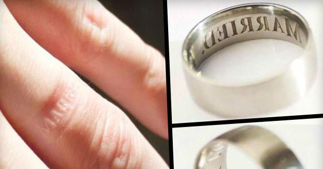 El anillo de bodas que evita las infidelidades está hecho de titanio; lleva grabadas las palabras 'Estoy Casado' y cuando el usuario decide quitárselo o dejarlo a un lado, la frase continúa impresa en el dedo.
