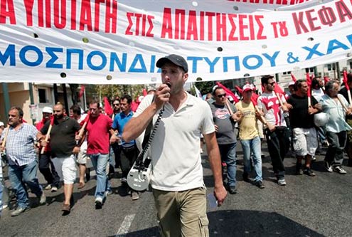 Unos 16 mil manifestantes salieron a las calles de Atenas y Salónica, la segunda ciudad de Grecia, durante la jornada de huelga general convocada por los principales sindicatos del país para protestar contra el plan gubernamental que prevé despedir a 25 mil empleados públicos de aquí a 2014.