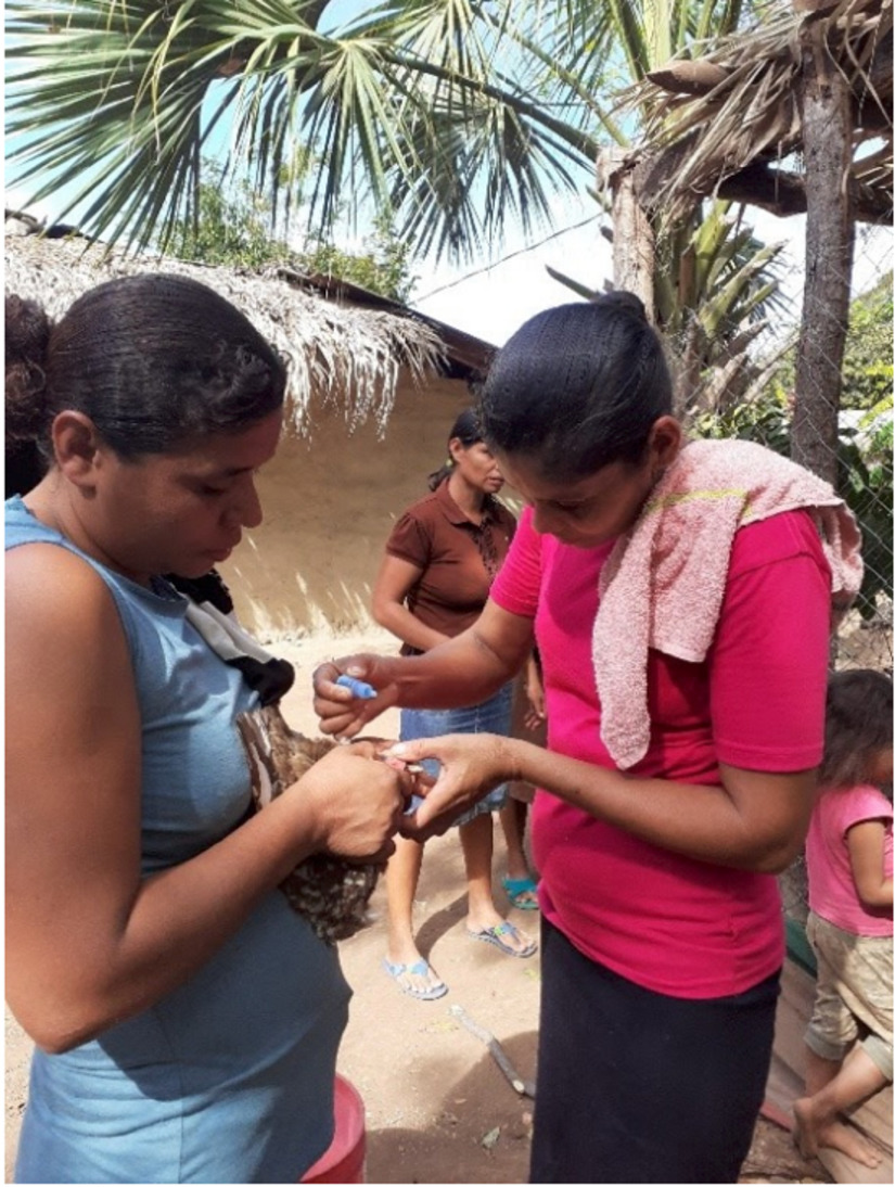 Chickens of San Juan de Limay are being vaccinated for Newcastle Disease under a project supported by Casa Baltimore-Limay.