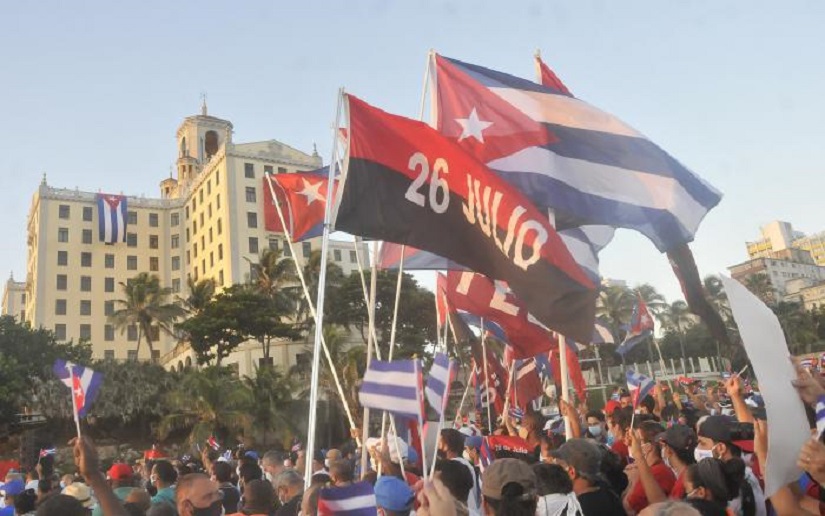 Díaz-Canel destacó que, en las semanas previas, se desarrolló una intensa labor política-comunicacional por parte de una gran plataforma de intoxicación mediática, financiada por el gobierno de los Estados Unidos y la maquinaria política de la Florida. Su objetivo, puntualizó, era alentar disturbios e inestabilidad en el país, aprovechando las difíciles condiciones aparejadas a la pandemia, el bloqueo recrudecido y las más de 240 medidas de la administración Trump.