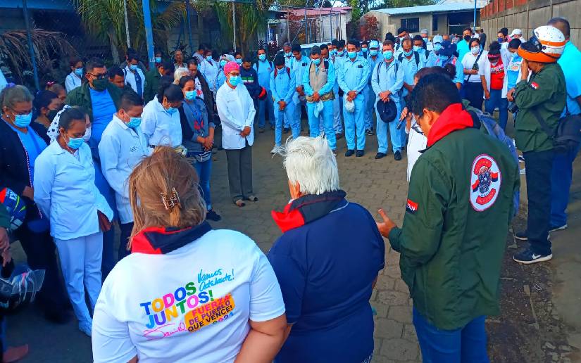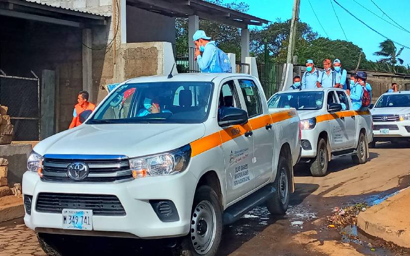 Previo a iniciar la megaferia, el ejército de batas blancas llegó en caravana de motorizados, camionetas y ambulancias hasta la comunidad Marvin Corrales para atender a las familias y rendir homenaje al General Sandino.