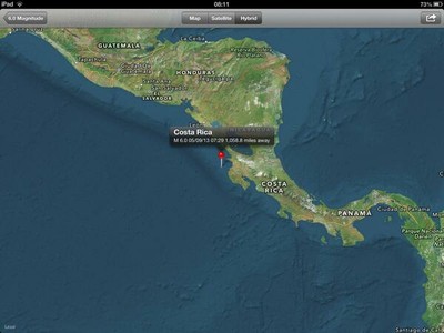 De acuerdo al organismo, el epicentro del movimiento telúrico fue ubicado 44 kilómetros al oeste de Sardinal, Costa Rica, y a una una profundidad de 41 kilómetros.