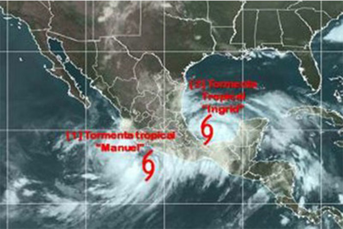 El huracán Ingrid y la tormenta tropical Manuel mantienen en alerta a las autoridades en México ante la cercanía a sus costas, la cual ha provocado un prolongado y fuerte temporal en diversas áreas de la nación.