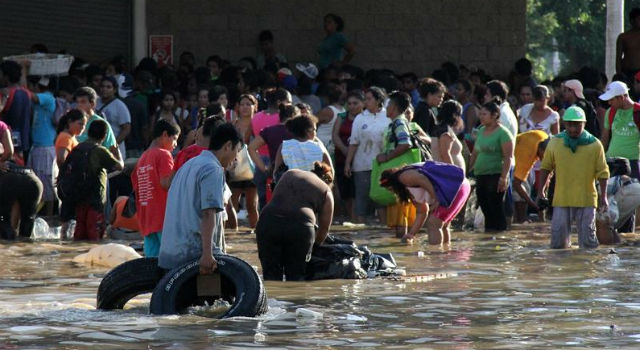 De los 81 muertos confirmados, según el saldo provisional, sólo en Acapulco [en la imagen superior, personas saquean tiendas en el puerto de Acapulco, ayer, tras el paso de Ingrid y Manuel. EFE/Francisca Meza], uno de los principales centros turísticos del país y el favorito de los habitantes de la capital mexicana, han perecido 18 personas por los efectos de Manuel, que han dejado aislada por carretera a esa ciudad.