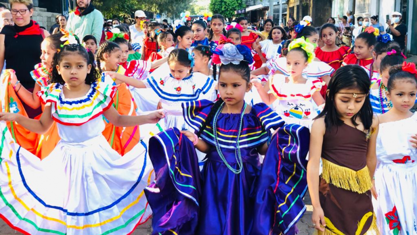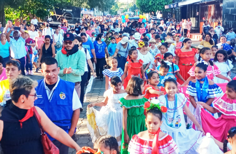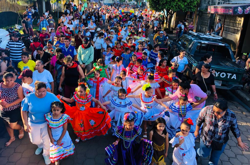 Niñ@s vistieron sus trajes típicos en compañía de sus padres, autoridades locales y candidat@s por la alianza FSLN, Unida Nicaragua Triunfa.