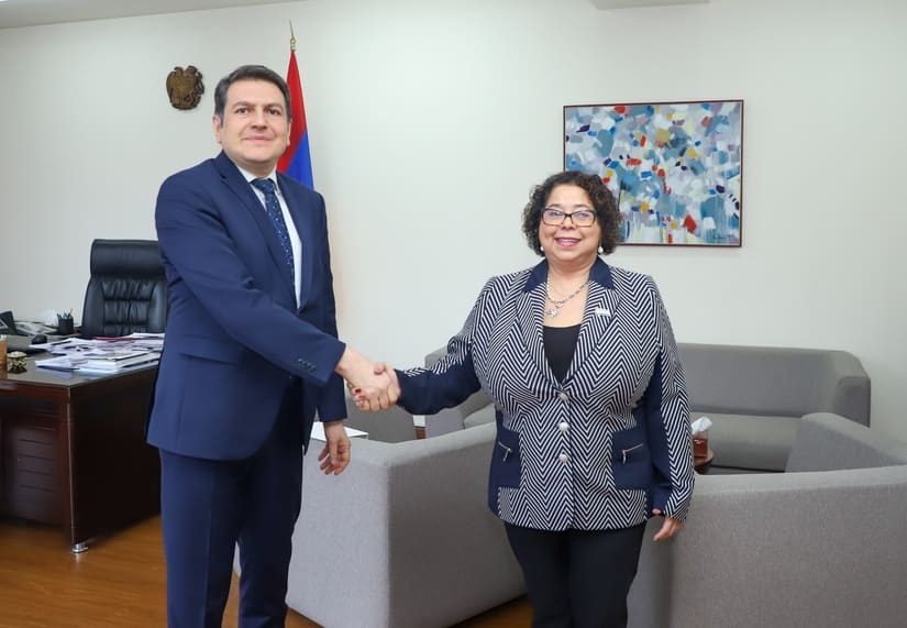 La Compañera Embajadora Alba Azucena se reunió con el Viceministro de Relaciones Exteriores de la República de Armenia, Paruyr Hovhannisyan, para entregar Copias de Estilo de Cartas Credenciales, asegurando que la acreditación de la Embajadora Torres, dará un impulso a las relaciones bilaterales de ambos Países.