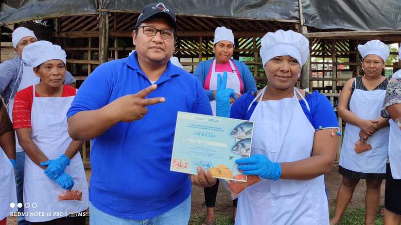 El Gobierno de Reconciliación y Unidad Nacional a través del MEFCCA realizó Curso Básico de Producción Acuícola en donde se elaboró Empaques de productos acuícola, chorizo de pescado; así también se hizo entrega de certificados a protagonista, quienes comentaron que fue de mucho interés porque enriquecieron los conocimientos para promover en los espacios de comercialización.
