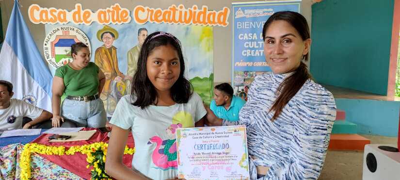 En Homenaje a la Vida y al Legado del Comandante Tomás Borge Martínez el Gobierno de Reconciliación y Unidad Nacional a través de la Comisión de Economía Creativa realizó la Promoción y Entrega de Certificados a los Jóvenes Protagonistas del Curso de Dibujo impartido en la Casa de Arte, Cultura y Creatividad del Municipio de Nueva Guinea.