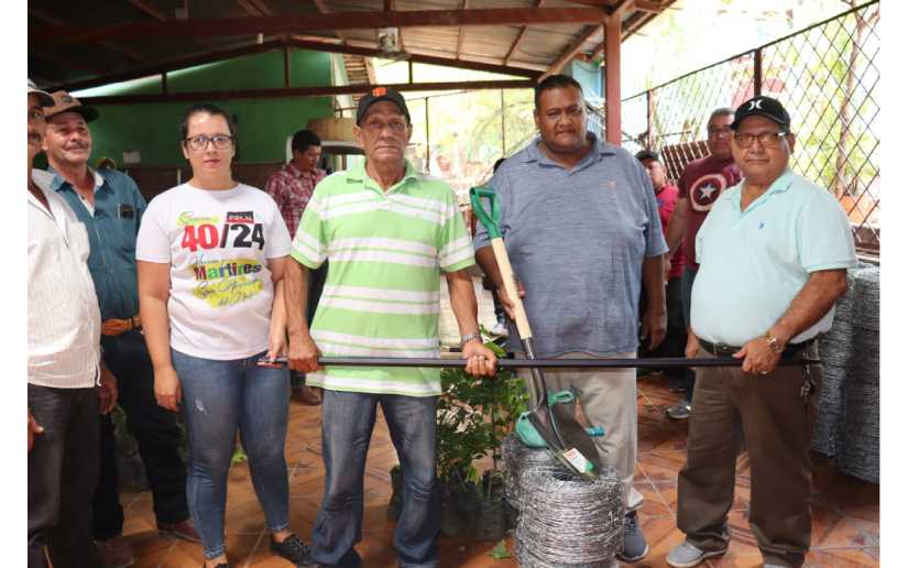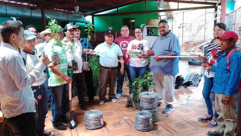 El Ministerio de Economía Familiar y la Alcaldía Municipal de San Francisco del Norte, realizaron entrega de Bienes Familiares a productores de las comunidades de este municipio, quienes recibieron materiales como rollos de alambre, grapas, palas, barra, martillo, y plantas frutales injertas de naranja dulce, naranja agria, limón agrio, calala, melocotón, aguacate y guayaba, con el objetivo de establecer mecanismos que contribuyan al cuido del medio ambiente y desarrollar prácticas amigable con la madre tierra.
