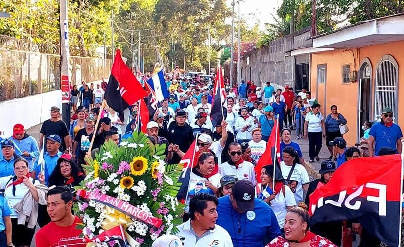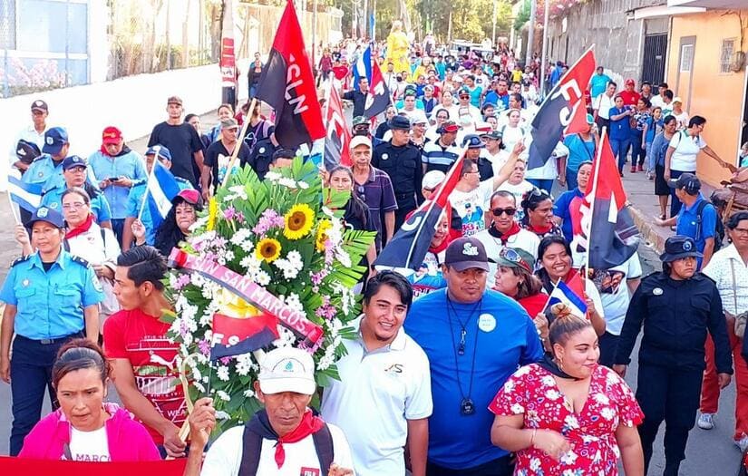 Recordando al heroico guerrillero, patriota, Augusto Nicolás Calderón Sandino en el 128 de su natalicio, las familias sandinistas recorrieron las principales calles, alzando las banderas rojas y negras y destacando el legado de amor, entrega, dignidad y soberanía que sembró el general Sandino a cada uno de los nicaragüenses.
