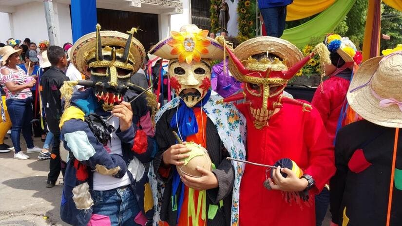 Hombres y mujeres vestidos de mantudos con trajes coloridos y típico de nuestro folclor bailan al son de los filarmónicos en estas fiestas de San Pascual que tienen más de 200 años de celebración en el Municipio de Chinandega.