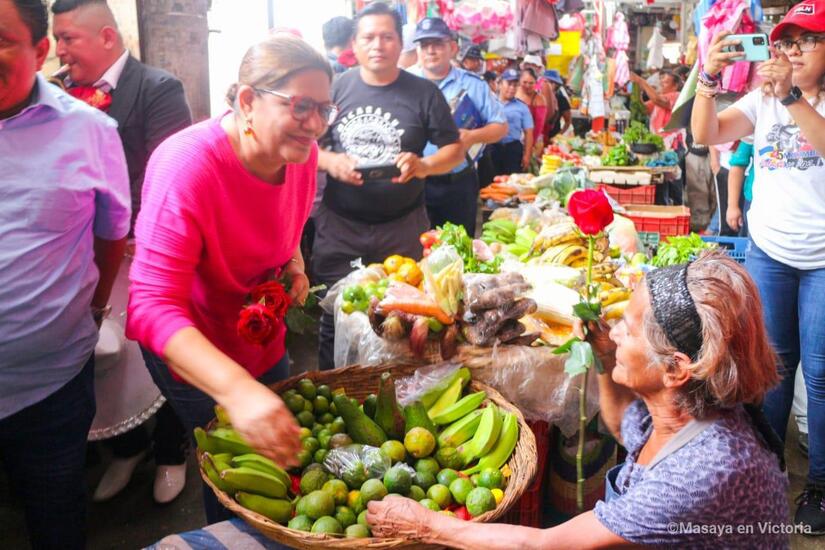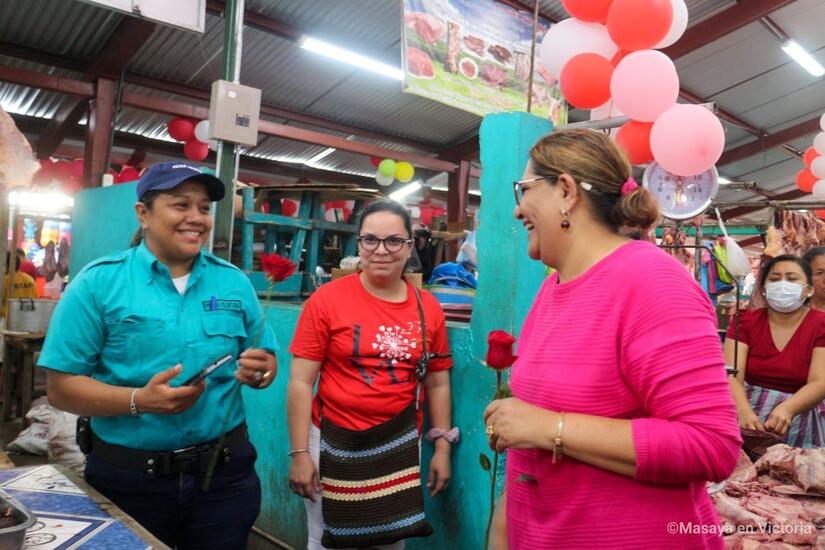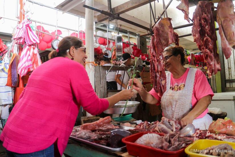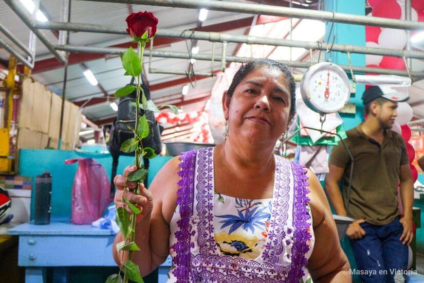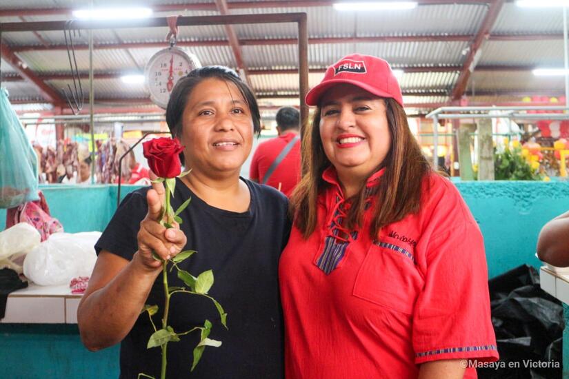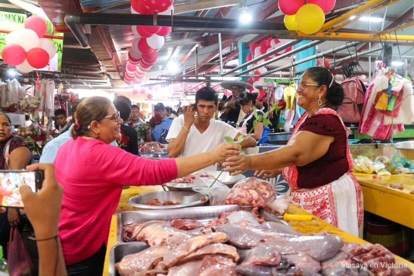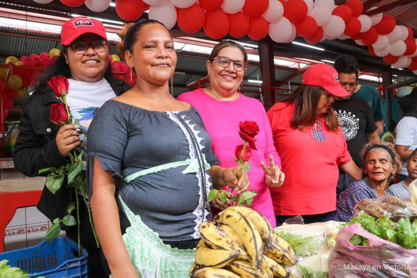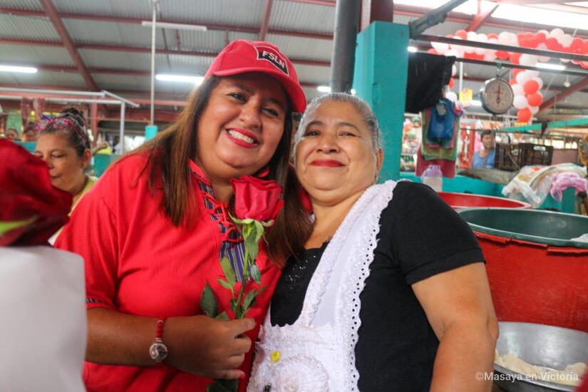 El Frente Sandinista, Alcaldía Sandinista de Masaya e Intendencia Municipal del Mercado Ernesto Fernández, celebran el Día de las Madres Nicaragüenses, llevando rosas y serenatas a las mamás comerciantes del segundo centro de compras más grande del País.