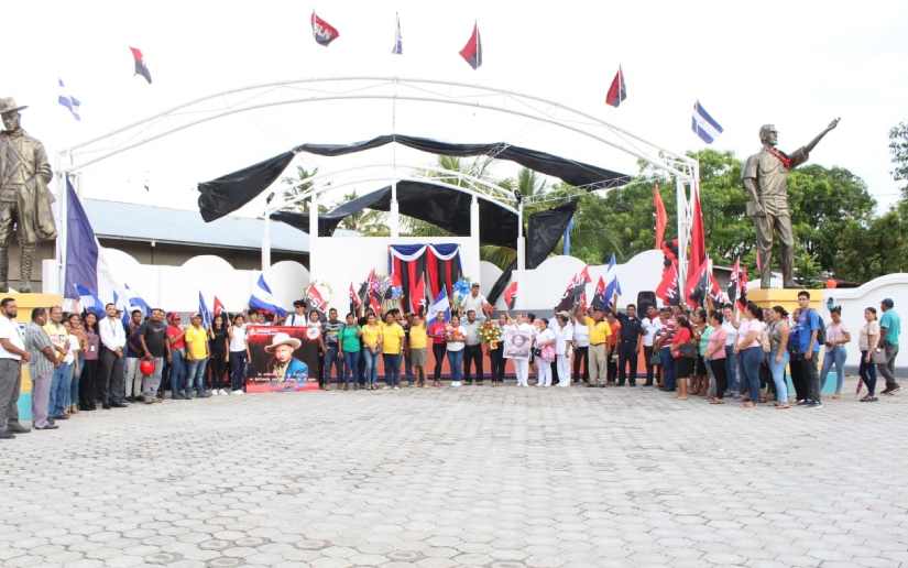La militancia del FSLN juntos con familiares de los Héroes y Mártires de La Rampla y Autoridades Municipales realizaron Caminata y depositó de ofrendas florales en el monumento de la plaza construida en honor a estos valientes hombres y mujeres jóvenes que partieron a otro plano de Vida en defensa de la Revolución.