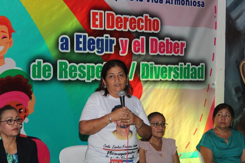 La actividad contó con el acompañamiento de las Autoridades Locales, la Compañera Marisol López, Vicealcaldesa de Villa El Carmen, brindó las palabras de bienvenida, refiriendo: “Estamos en esta presentación de la Cartilla sobre Diversidad Digna trabajando para alcanzar ese objetivo de Respeto a la Vida y la No Violencia. Nuestro Gobierno Sandinista es muy respetuoso de la Diversidad de todas y todos los nicaragüenses, Tod@s estamos incluidos en este proceso de Restitución de Derechos. Hombres y mujeres somos diferentes, pero Tod@s tenemos derecho a ser entendidos, respetados y escuchados dentro de la Familia y Comunidad”.