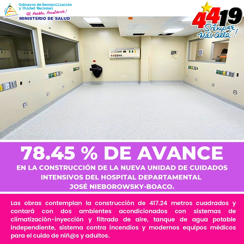 Actualmente, se está construyendo la nueva Unidad de Cuidados Intensivos del Hospital Departamental José Nieborowsky, Boaco, para atender en mejores condiciones a las Familias de 461 Comunidades y 91 Barrios de este Departamento.