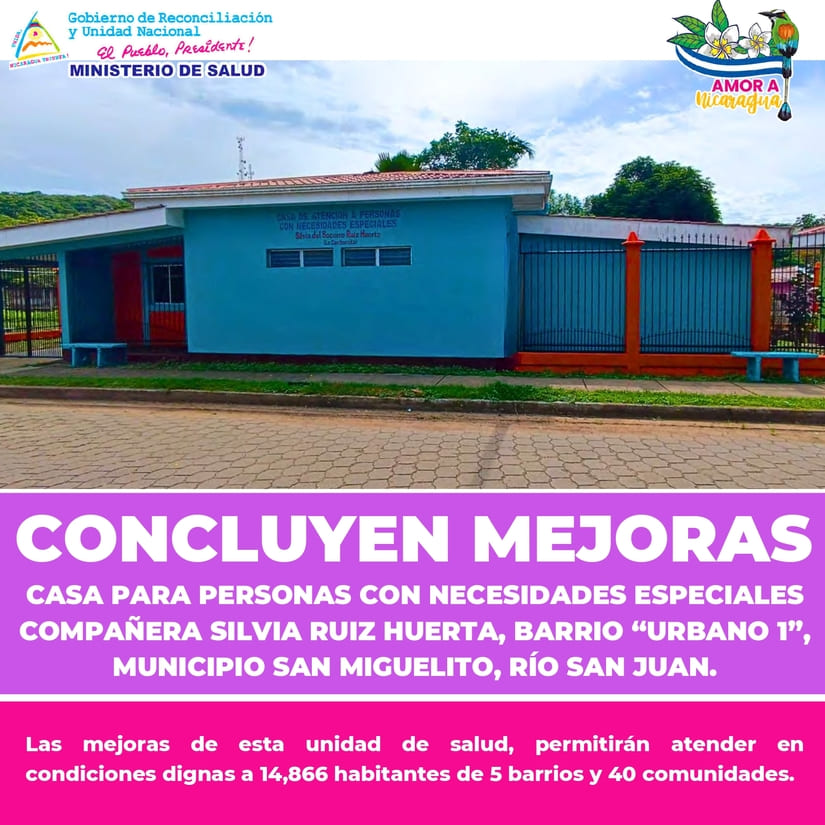 Mañana Miércoles entregaremos las mejoras de la Casa para Personas con Necesidades Especiales Compañera Silvia Ruiz Huerta, Barrio “Urbano 1”, San Miguelito, Río San Juan, donde se atienden 14,866 habitantes de 5 Barrios y 40 Comunidades.